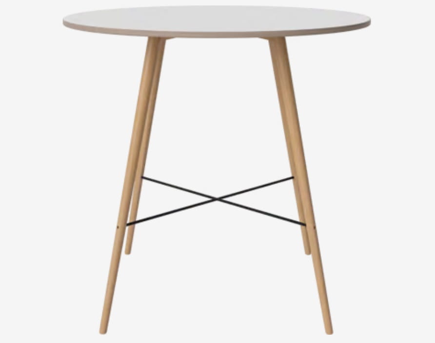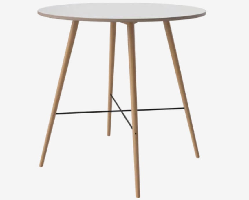 BOLIA stół barowy BEAVER Ø110 biały laminat / nogi dąb naturalny