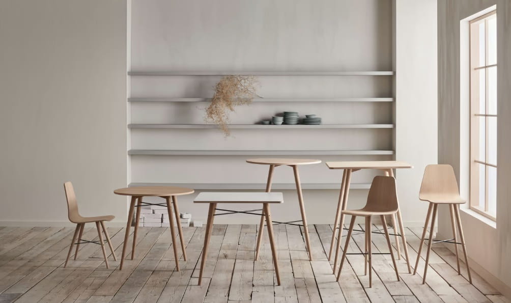 Stolik barowy BEAVER marki BOLIA charakteryzuje się cienkimi, drewnianymi nogami, inspirowanymi projektami z lat 50. XX wieku oraz metalowym łącznikiem, który nadaje całości unikatowego wyrazu. Dzięki wielu opcjom wybarwienia drewnianej podstawy oraz uniwersalnym kolorom blatu, stolik dopasuje się do każdej aranżacji i Twojego indywidualnego stylu. Świetnie sprawdzi się nie tylko w przestrzeniach domowych, ale także publicznych, takich jak bary i restauracje. W serii BEAVER dostępne są stoliki barowe.