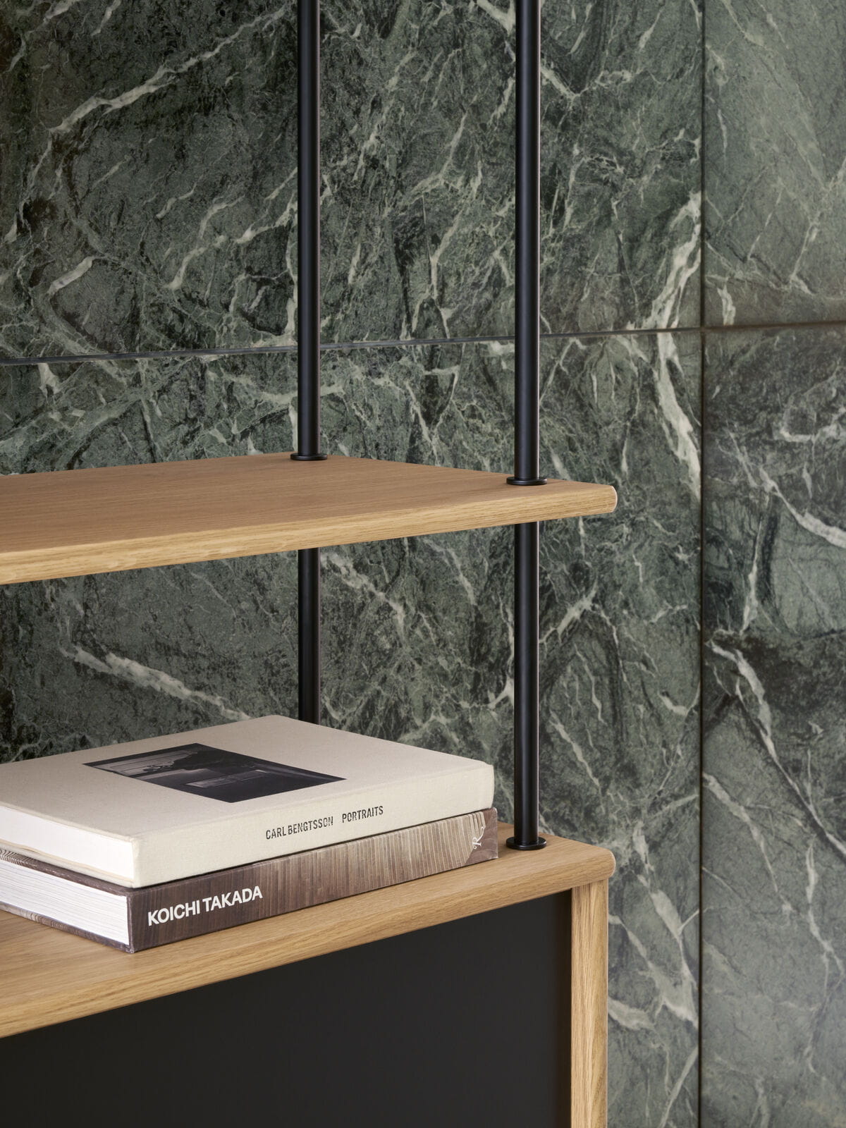 System półek BM0253 zaprojektowany w 1953 roku. Carl Hansen & Søn po raz pierwszy wprowadza do produkcji modułowy system półek Børge Mogensena. Minimalistyczny i modułowy, projekt wykonany z rur stalowych i certyfikowanego drewna jest również dostępny w różnych rodzajach drewna, aby nadać osobowość przestrzeni. Fuzja estetyki, funkcji i rzemiosła, profiluje wszystkie cechy wspaniałego, trwałego projektu.