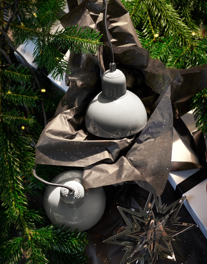 - jasnoszary klosz z czarnym kablem i mosiężnymi akcentami