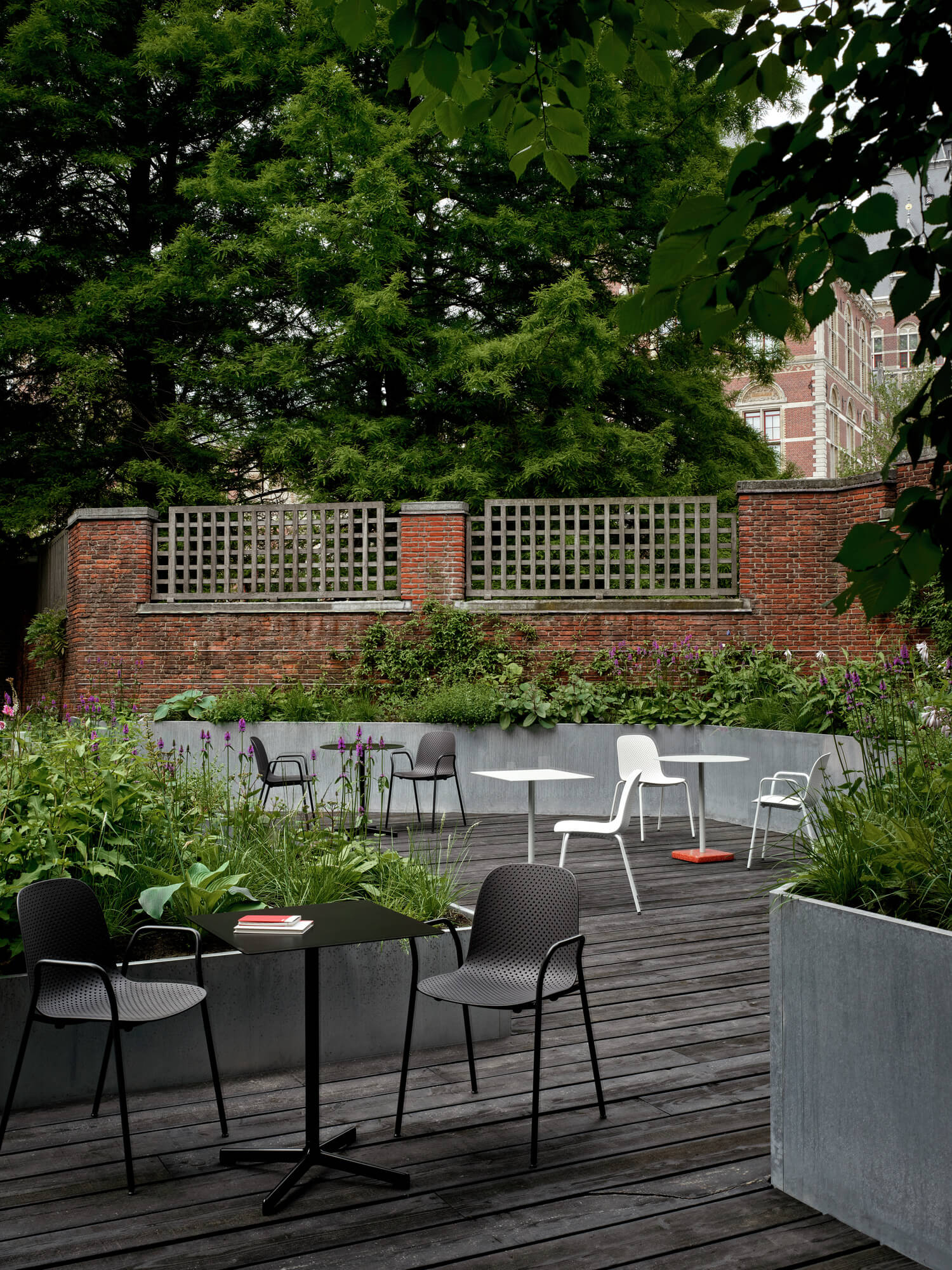 Zaprojektowane przez duet Scholten & Baijings skandynawskie krzesło 13EIGHTY od HAY zawdzięcza swoją nazwę liczbie dziurek na siedzisku. Ten zabieg gwarantuje charakterystyczny efekt wizualny, a częściowa transparentność krzeseł pozwala na grę światła i cienia, zwłaszcza, gdy produkt marki HAY zostanie umieszczony na balkonie lub w ogrodzie. Dziurki nadają projektowi dynamiki, a z praktycznego punktu widzenia doskonale sprawdzą się podczas deszczu, ponieważ otwory pozwalają na swobodny przepływ wody. Krzesło 13EIGHTY to idealne rozwiązanie nie tylko do ogrodu, ale i jadalni, gdzie doskonale sprawdzi się pełniąc role wygodnego siedziska i wyjątkowo estetycznego elementu wyposażenia wnętrz.