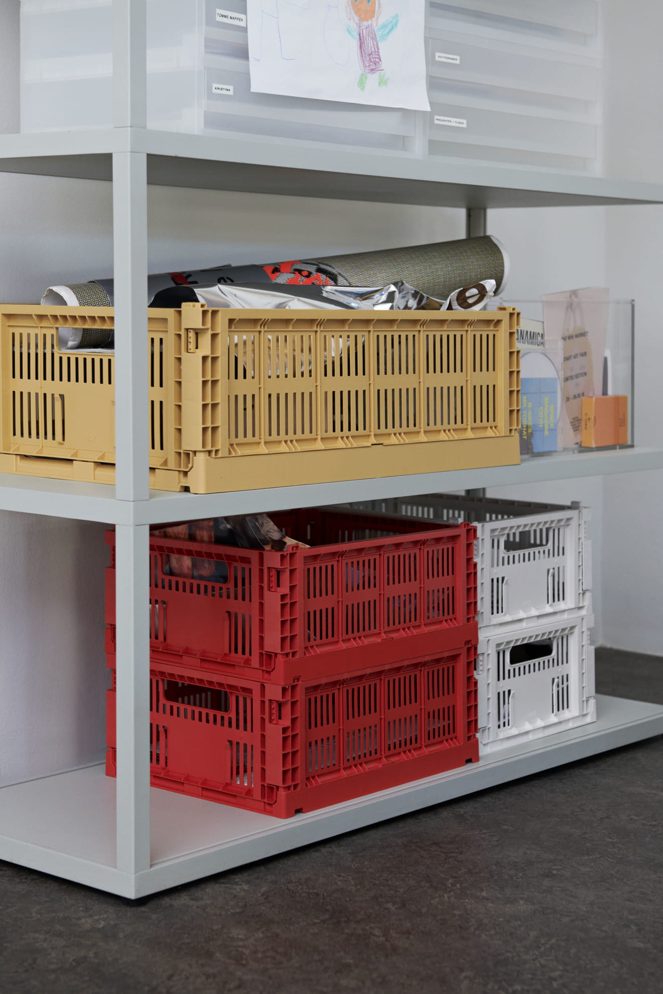 Najlepiej sprzedająca się seria COLOUR CRATE kolorowych skrzynek do przechowywania maki HAY, została zaktualizowana o nowy projekt i wykonana w 100% z przetworzonego plastiku, w ramach długoterminowych inicjatyw HAY na rzecz bardziej zrównoważonego podejścia w projektowaniu.