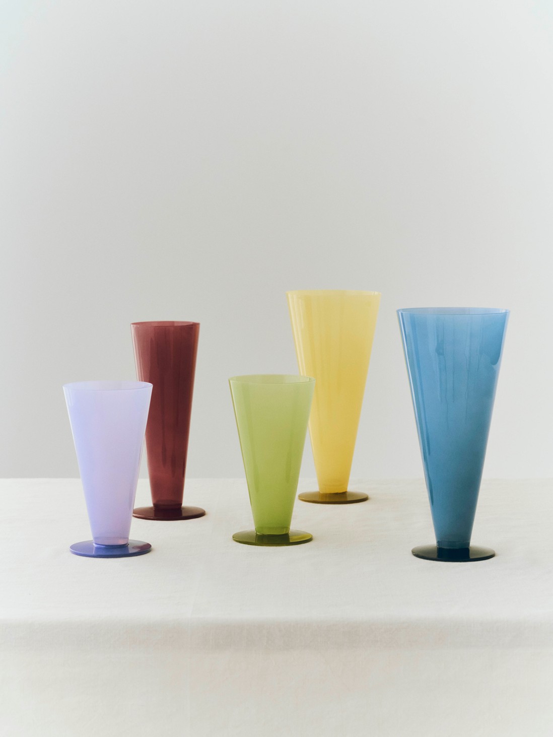 Wazon Conical zachwyca czystą, minimalistyczną sylwetką z charakterystycznie zwężającymi się, skośnymi bokami. Wykonany ze szkła sodowo-wapniowego, posiada ręcznie malowane, dwukolorowe wykończenie w tonacji tone-in-tone, które nadaje mu subtelnej elegancji i nowoczesnego charakteru.