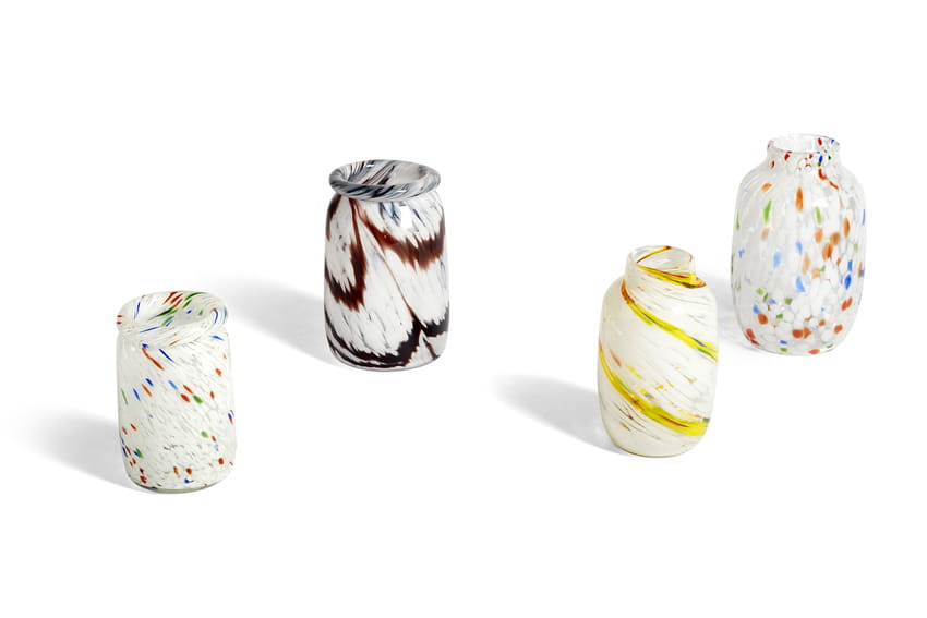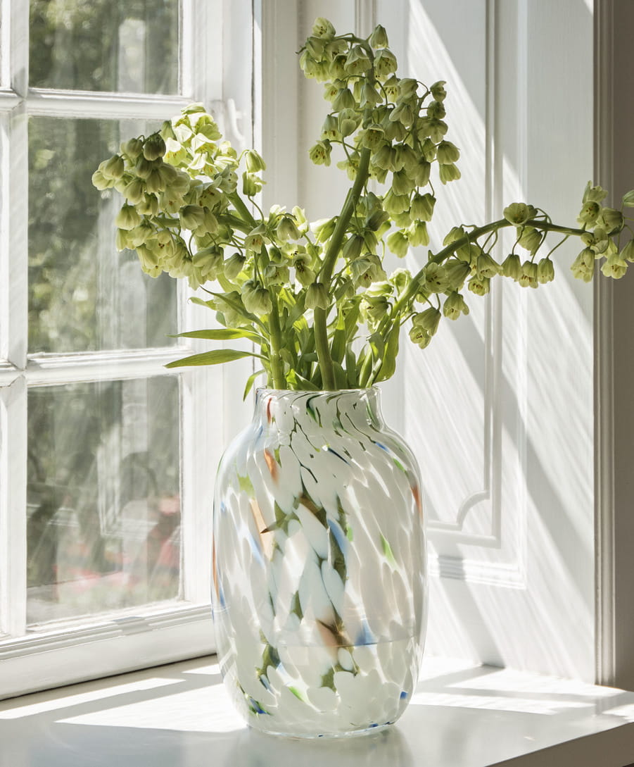 SPLASH to ręcznie robiony wazon przy użyciu specjalnej techniki dmuchania szkła. Wazon ma unikalny, wirowany wzór, który skupia wiele warstw kolorowych, szklanych kropek. Dostępny w różnych wzorach i rozmiarach. Wazony mogą być używane zarówno do eksponowania kwiatów, jak i jako obiekt dekoracyjny.