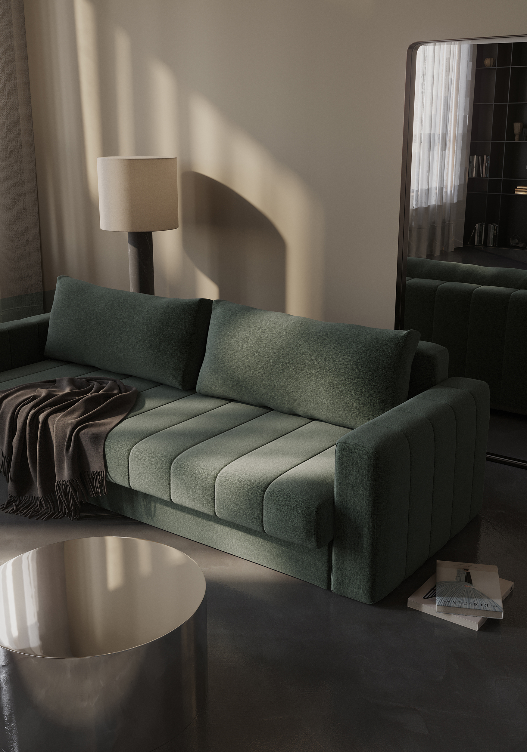 Sofa AKELLO została zaprojektowana z myślą o nowoczesnym stylu życia dzięki opływowym kształtom, eleganckim przeszyciom i przestronnemu schowkowi. Automatycznie rozkładane nóżki zapewniają płynne przejście od sofy do łóżka, dzięki czemu jest to idealne rozwiązanie do stylowych, przestronnych wnętrz.