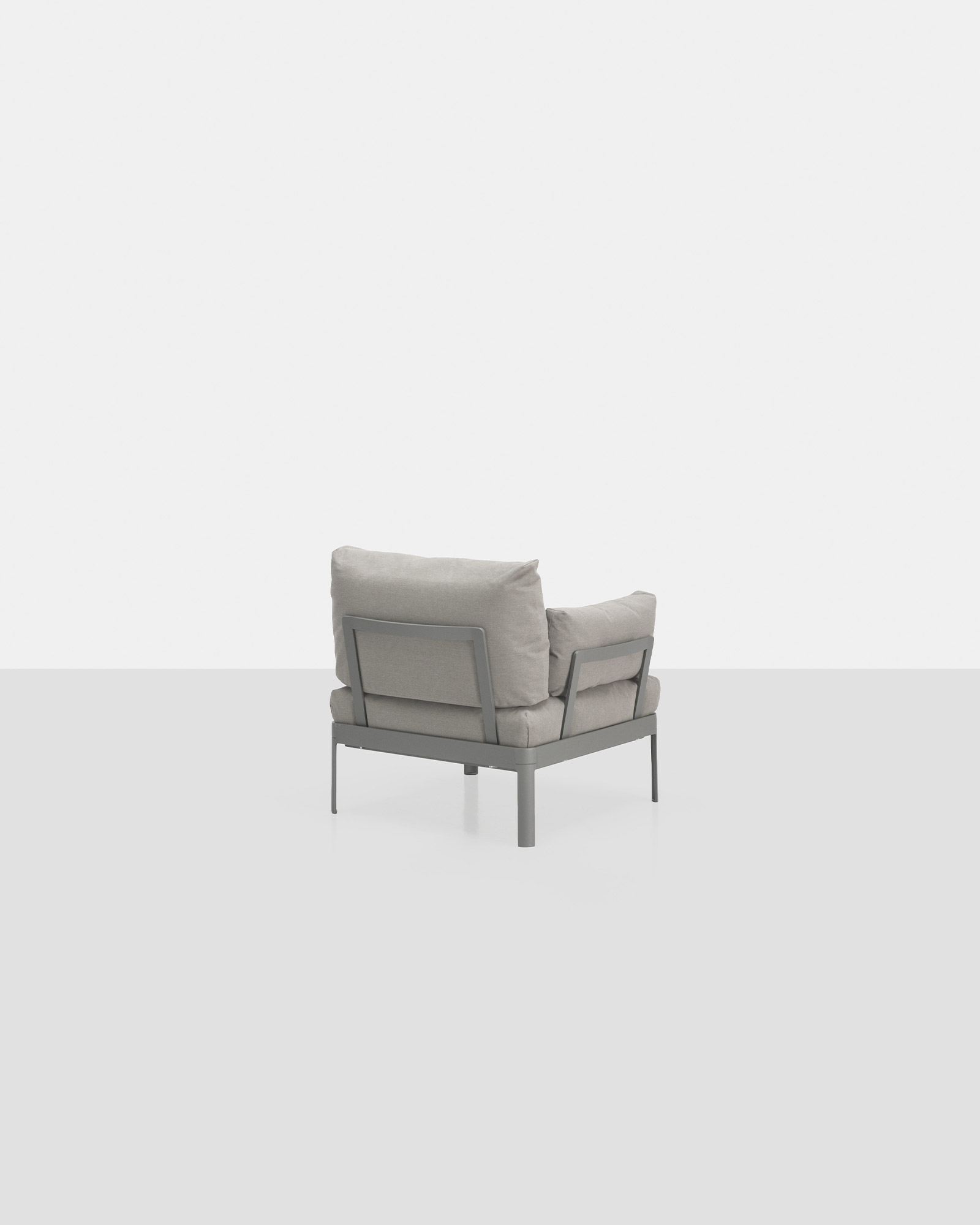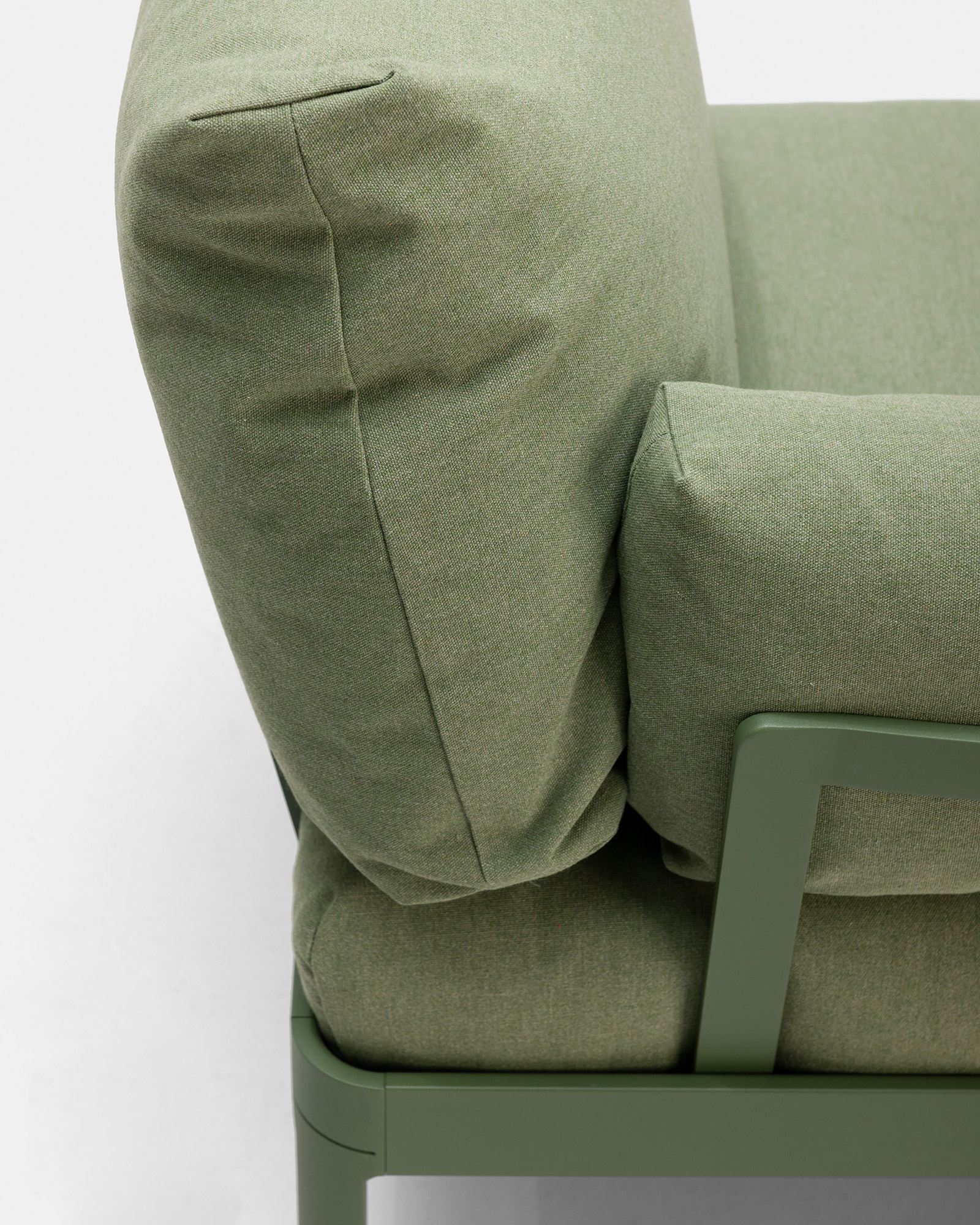Reedycja systemu zewnętrznego zaprojektowanego przez Luciano Bertonciniego w 2014 r. z ramą aluminiową, w 100% nadającą się do recyklingu, malowaną proszkowo i plastikowymi listwami. Sofy, fotele, stoliki