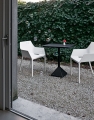 Modernistyczne krzesło MEM zwraca uwagę nie tylko wyrazistym, monochromatycznym kolorem, ale przede wszystkim formą. Charakterystyczne tylne nogi grają perspektywą - patrząc z przodu widzimy wszystkie cztery nogi, ale krzesło jest stabilne dzięki ich odchyleniu od pionu, co daje ciekawy kształt trapezu, widoczny z profilu. Krzesło MEM od marki KRISTALIA stworzone jest z utwardzanego polipropylenu, co daje meblowi wytrzymałość. Podczas procesu produkcji w plastik wstrzykiwane są barwnik i szkło, co oprócz odporności materiału daje elegancko podkreślone zagięcia i okrągłości oraz jednolity kolor. Ergonomiczny i prosty MEM nadaje się do wnętrz biurowych i mieszkań, ale też świetnie sprawdza się w ogrodach czy restauracyjnych patio. Z krzesła projektu marki KRISTALIA korzystają hotele, muzea i nowoczesne biura, m.in. z Centralnej Azji czy Norwegii.
