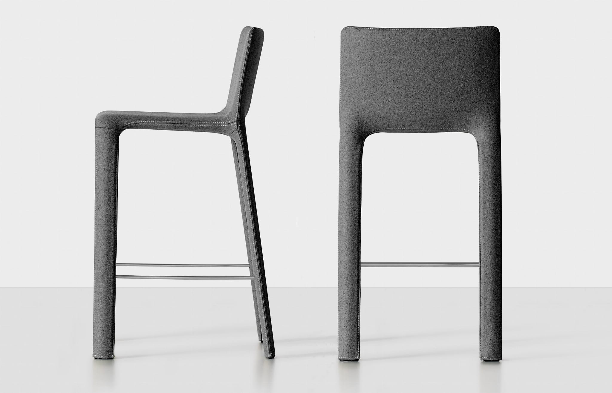 Stołek JOKO jest dostępny w dwóch wysokościach, standardowej 66 cm lub wysokiej 76 cm, oraz w wielu wariantach tkanin obiciowych.