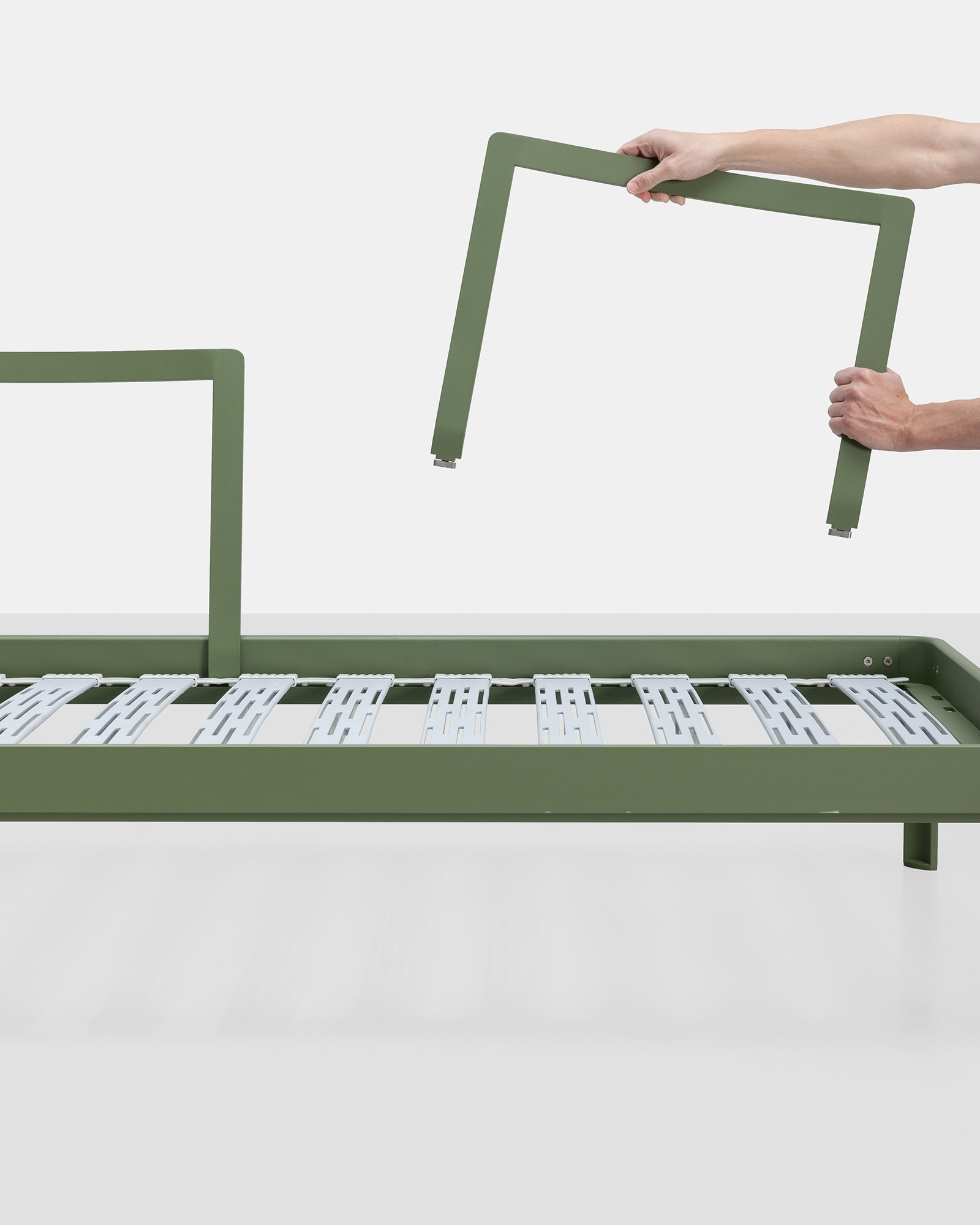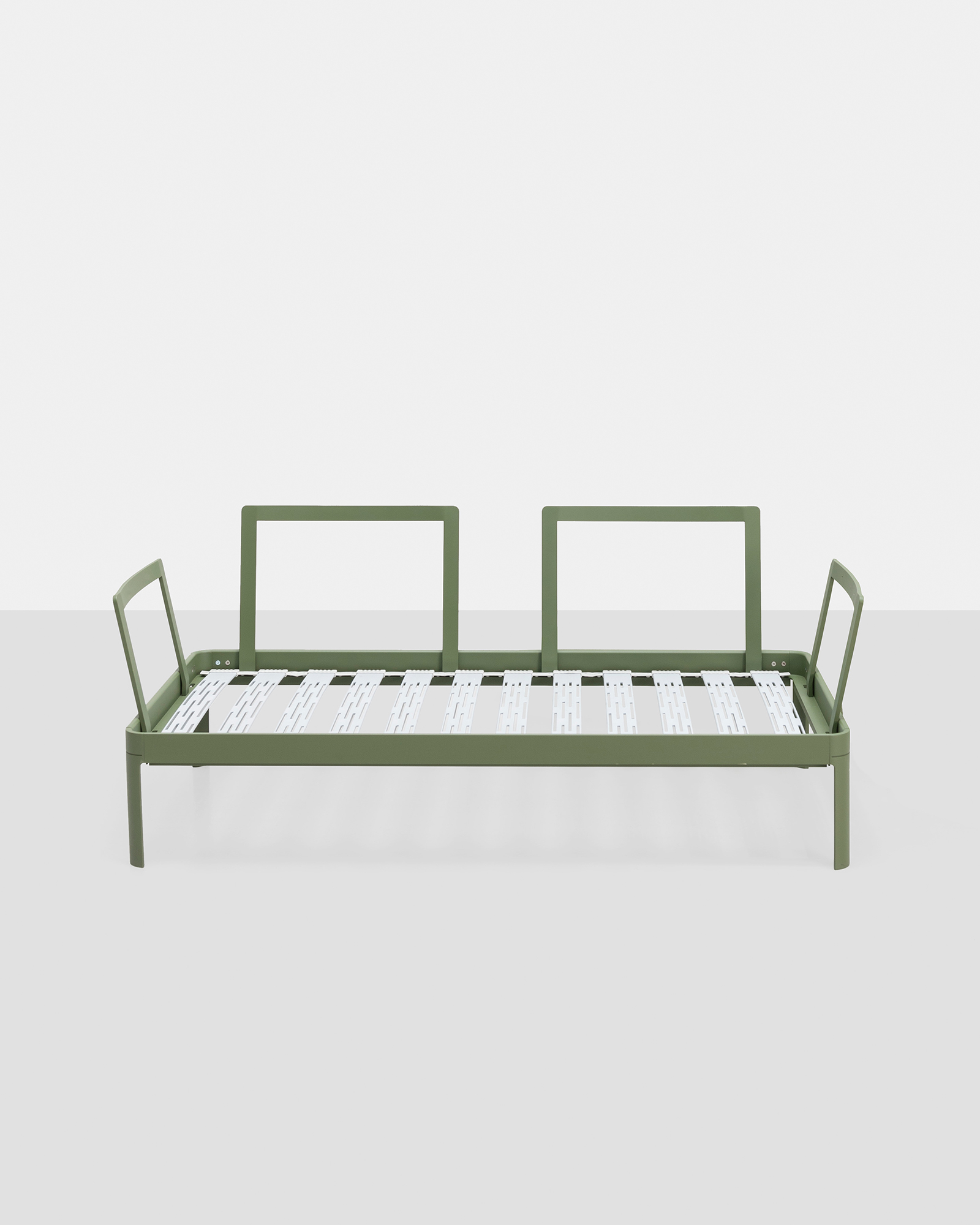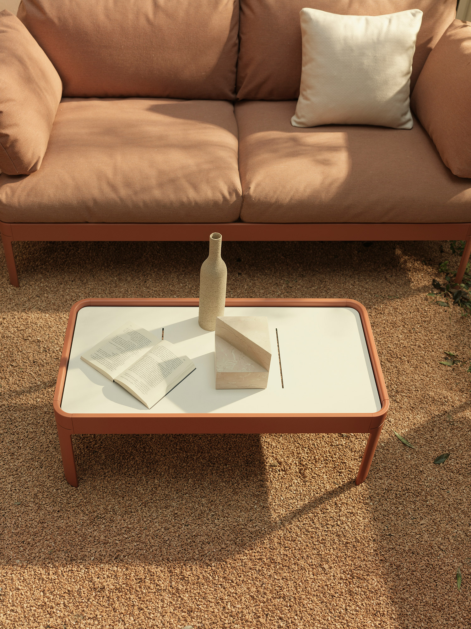 Reedycja systemu zewnętrznego zaprojektowanego przez Luciano Bertonciniego w 2014 r. z ramą aluminiową, w 100% nadającą się do recyklingu, malowaną proszkowo i plastikowymi listwami. Sofy, fotele, stoliki