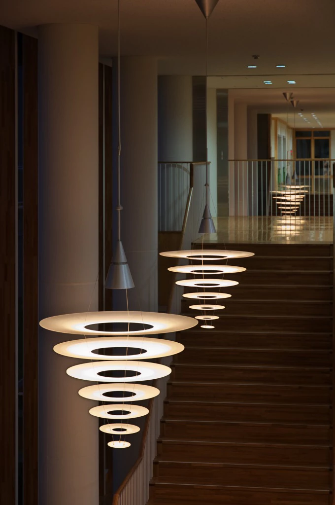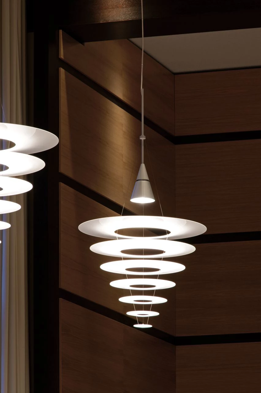 Lampa ENIGMA 825 została zaprojektowana przez japońskiego projektanta Shoichi Uchiyama w 2007 roku i tym samym dołączyła do rodziny lamp ENIGMA. Jest ona większą wersją lampy 425. Składa się z delikatnej konstrukcji złożonej z kilku warstw cienkich, koncentrycznie ułożonych okręgów. Matowe powierzchnie górne delikatnie rozpraszają światło, natomiast błyszczące dolne zapobiegają nadmiernym odblaskom. Lampa świeci przytulnym, skierowanym do dołu, światłem. Projekt lampy łączy japoński wdzięk ze skandynawską prostotą.