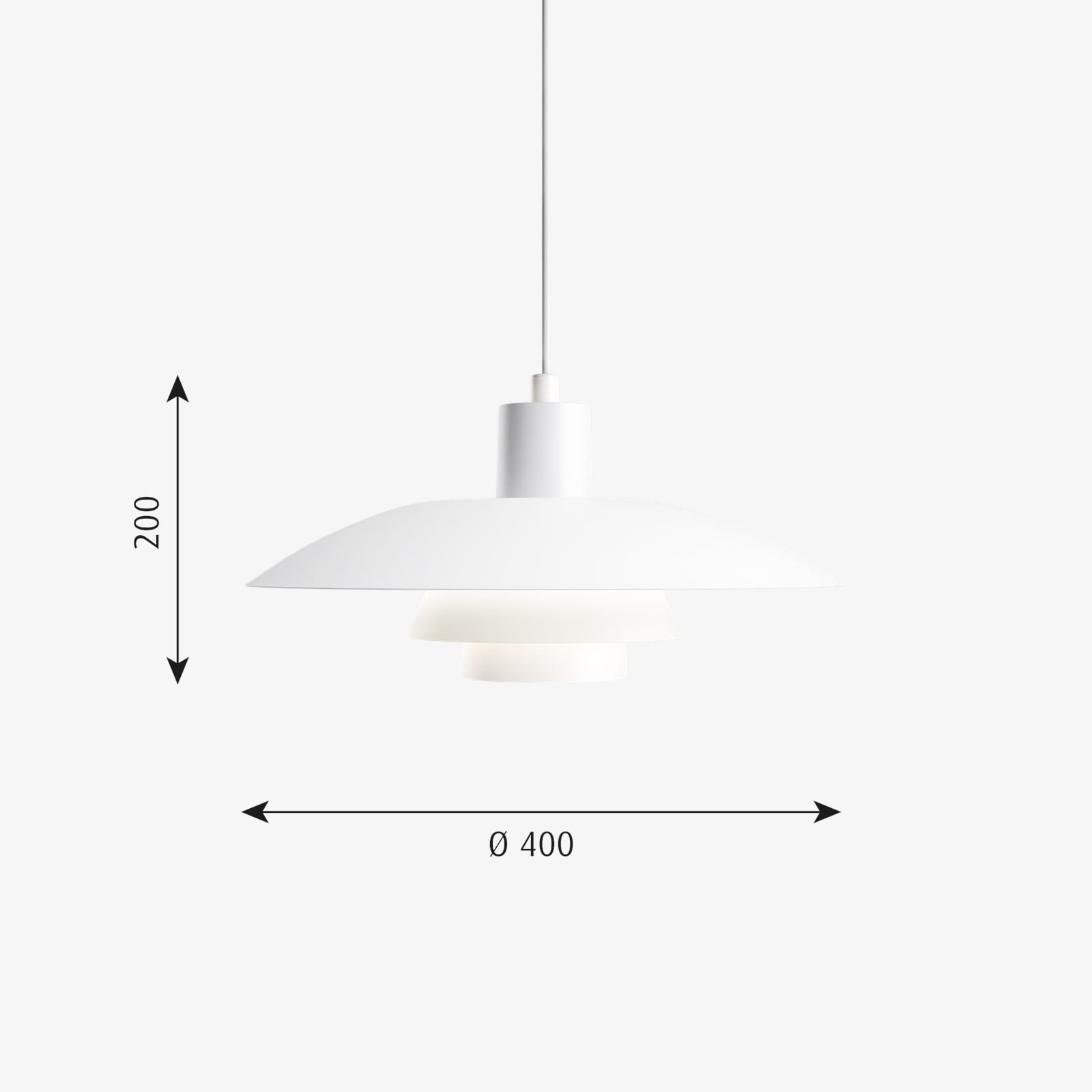 Oprawa PH 4/3 zapewnia komfortowe, nieoślepiające światło, modelowane w oparciu o zasadę odblaskowego systemu trójwarstwowych kloszy z których jeden kieruje większość światła w dół, drugi emituje światło boczne skierowane na zewnątrz klosza oraz w kierunku jego rdzenia emitującego delikatny blask w wyniku odbicia. Metalowe klosze pomalowane na biało zapewniają równomiernie rozproszone światło, które idealnie wypełni wnętrze pomieszczenia.