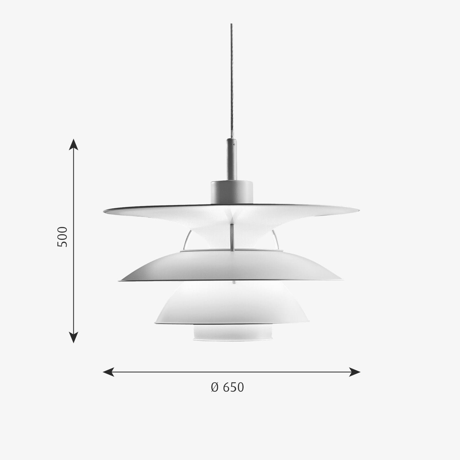 System czterech kloszy został wprowadzony na rynek przez Poula Henningsena w 1931 roku. Lampa PH 6½-6 gwarantuje komfortowe, nieoślepiające światło, modelowane w oparciu o zasadę odblaskowego systemu czterowarstwowych kloszy, z których trzy główne kierują większość światła w dół. Klosze w kolorze białym, zostały matowo wykończone by zapewnić niezwykle przyjazne oświetlenie.