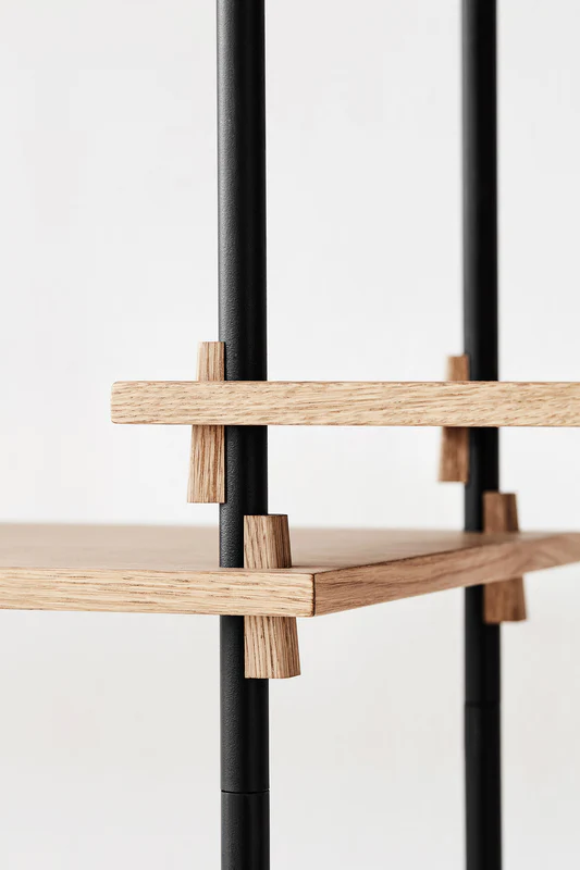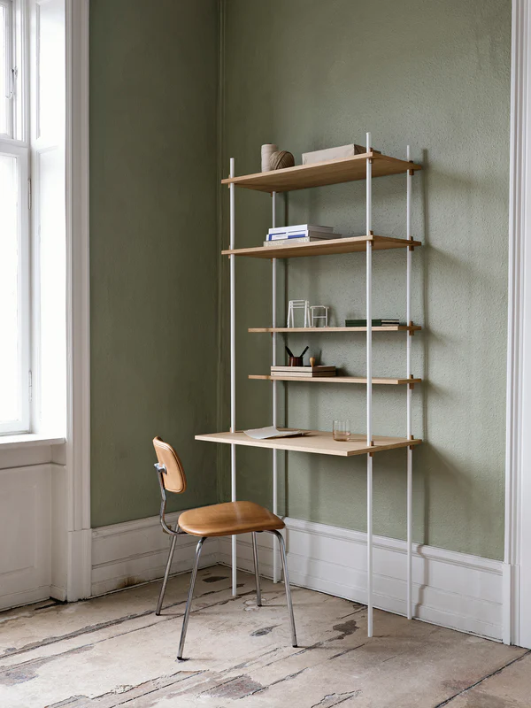 System zabudowy meblowej duńskiej marki MOEBE to nieskończenie adaptowalne rozwiązanie, oparte na elementach składowych takie jak półki, profile, komody i akcesoria, które możesz ze sobą łączyć i rozbudowywać, dzięki czemu Twój regał jest całkowicie konfigurowalny i może się zmieniać, ewoluować i podążać za Twoimi aktualnymi potrzebami a w efekcie pozostać z Tobą na całe życie.