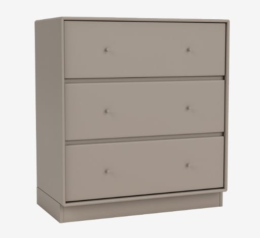 Komoda CARRY marki MONTANA wyśmienicie sprawdzi się w każdej garderobie, sypialni czy przedpokoju lub pokoju dziecięcym. Trzy pojemne szuflady pomieszczą najpotrzebniejsze przedmioty, takie jak bielizna, ubrania, czy drobne akcesoria. Na blacie z powodzeniem zmieścisz kasetkę z kosmetykami, ustawisz dekoracje lub zdjęcia bliskich w pięknych ramkach. Jak wszystkie produkty MONTANA komoda CARRY dostępna jest w 40 kolorach dzięki czemu z łatwością dopasujesz ją do każdej aranżacji. Aby jak najpełniej odpowiedzieć na twoje potrzeby, możesz wybrać także sposób montażu i wykończenia podstawy - komoda może zostać wyposażona w reling do przymocowania na ścianie, dodatkową bazę (plintę), metalowe nóżki lub kółka. Funkcjonalność, nieskazitelna estetyka i wytrzymałość - to wszystko zagwarantuje ci MONTANA i komoda CARRY.