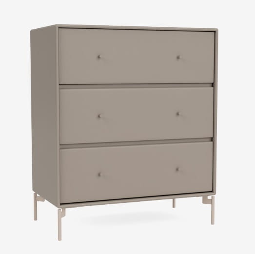Komoda CARRY marki MONTANA wyśmienicie sprawdzi się w każdej garderobie, sypialni czy przedpokoju lub pokoju dziecięcym. Trzy pojemne szuflady pomieszczą najpotrzebniejsze przedmioty, takie jak bielizna, ubrania, czy drobne akcesoria. Na blacie z powodzeniem zmieścisz kasetkę z kosmetykami, ustawisz dekoracje lub zdjęcia bliskich w pięknych ramkach. Jak wszystkie produkty MONTANA komoda CARRY dostępna jest w 40 kolorach dzięki czemu z łatwością dopasujesz ją do każdej aranżacji. Aby jak najpełniej odpowiedzieć na twoje potrzeby, możesz wybrać także sposób montażu i wykończenia podstawy - komoda może zostać wyposażona w reling do przymocowania na ścianie, dodatkową bazę (plintę), metalowe nóżki lub kółka. Funkcjonalność, nieskazitelna estetyka i wytrzymałość - to wszystko zagwarantuje ci MONTANA i komoda CARRY.