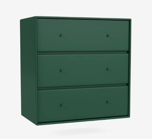 Komoda CARRY marki MONTANA wyśmienicie sprawdzi się w każdej garderobie, sypialni czy przedpokoju lub pokoju dziecięcym. Trzy pojemne szuflady pomieszczą najpotrzebniejsze przedmioty, takie jak bielizna, ubrania, czy drobne akcesoria. Na blacie z powodzeniem zmieścisz kasetkę z kosmetykami, ustawisz dekoracje lub zdjęcia bliskich w pięknych ramkach. Jak wszystkie produkty MONTANA komoda CARRY dostępna jest w 40 kolorach dzięki czemu z łatwością dopasujesz ją do każdej aranżacji. Aby jak najpełniej odpowiedzieć na twoje potrzeby, możesz wybrać także sposób montażu i wykończenia podstawy - komoda może zostać wyposażona w reling do przymocowania na ścianie, dodatkową bazę (plintę), metalowe nóżki lub kółka. Funkcjonalność, nieskazitelna estetyka i wytrzymałość - to wszystko zagwarantuje ci MONTANA i komoda CARRY.