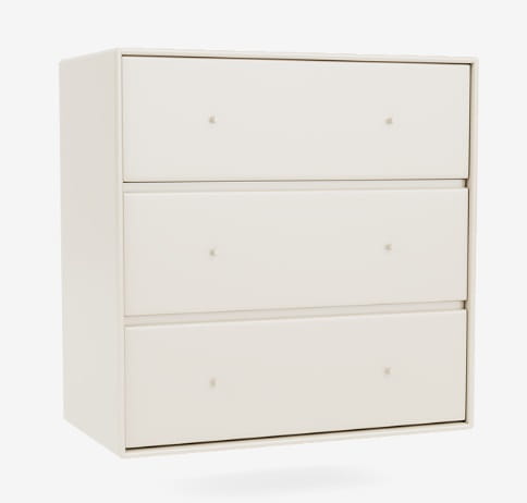 Komoda CARRY marki MONTANA wyśmienicie sprawdzi się w każdej garderobie, sypialni czy przedpokoju lub pokoju dziecięcym. Trzy pojemne szuflady pomieszczą najpotrzebniejsze przedmioty, takie jak bielizna, ubrania, czy drobne akcesoria. Na blacie z powodzeniem zmieścisz kasetkę z kosmetykami, ustawisz dekoracje lub zdjęcia bliskich w pięknych ramkach. Jak wszystkie produkty MONTANA komoda CARRY dostępna jest w 40 kolorach dzięki czemu z łatwością dopasujesz ją do każdej aranżacji. Aby jak najpełniej odpowiedzieć na twoje potrzeby, możesz wybrać także sposób montażu i wykończenia podstawy - komoda może zostać wyposażona w reling do przymocowania na ścianie, dodatkową bazę (plintę), metalowe nóżki lub kółka. Funkcjonalność, nieskazitelna estetyka i wytrzymałość - to wszystko zagwarantuje ci MONTANA i komoda CARRY.