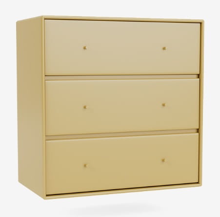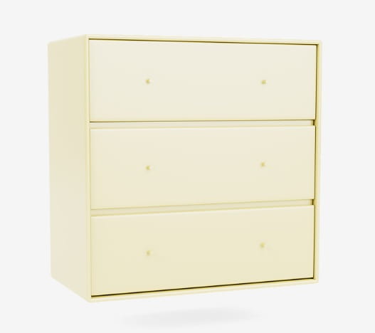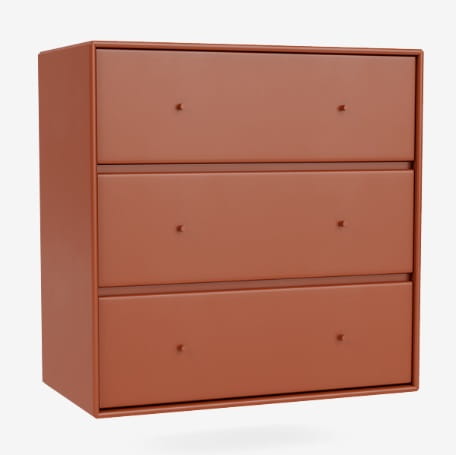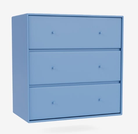 Komoda CARRY marki MONTANA wyśmienicie sprawdzi się w każdej garderobie, sypialni czy przedpokoju lub pokoju dziecięcym. Trzy pojemne szuflady pomieszczą najpotrzebniejsze przedmioty, takie jak bielizna, ubrania, czy drobne akcesoria. Na blacie z powodzeniem zmieścisz kasetkę z kosmetykami, ustawisz dekoracje lub zdjęcia bliskich w pięknych ramkach. Jak wszystkie produkty MONTANA komoda CARRY dostępna jest w 40 kolorach dzięki czemu z łatwością dopasujesz ją do każdej aranżacji. Aby jak najpełniej odpowiedzieć na twoje potrzeby, możesz wybrać także sposób montażu i wykończenia podstawy - komoda może zostać wyposażona w reling do przymocowania na ścianie, dodatkową bazę (plintę), metalowe nóżki lub kółka. Funkcjonalność, nieskazitelna estetyka i wytrzymałość - to wszystko zagwarantuje ci MONTANA i komoda CARRY.
