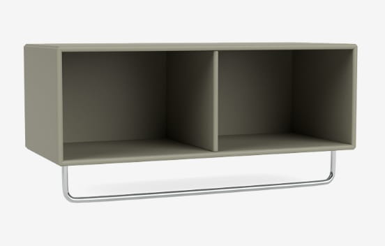 Szafka z wieszakiem COAT marki MONTANA stanowi idealne rozwiązanie do twojego przedpokoju. Podzielona na pół szafka pomieści wszystkie drobne akcesoria, takie jak czapki, szaliki, okulary czy inne przedmioty i pozwoli na utrzymanie porządku na niewielkiej przestrzeni. Na przymocowanym pod spodem, stalowym relingu z powodzeniem powiesisz natomiast aktualnie używane płaszcze i kurtki, czy parasolkę. Jak wszystkie produkty MONTANA szafka COAT dostępna jest w 40 kolorach dzięki czemu z łatwością dopasujesz ją do każdej aranżacji.