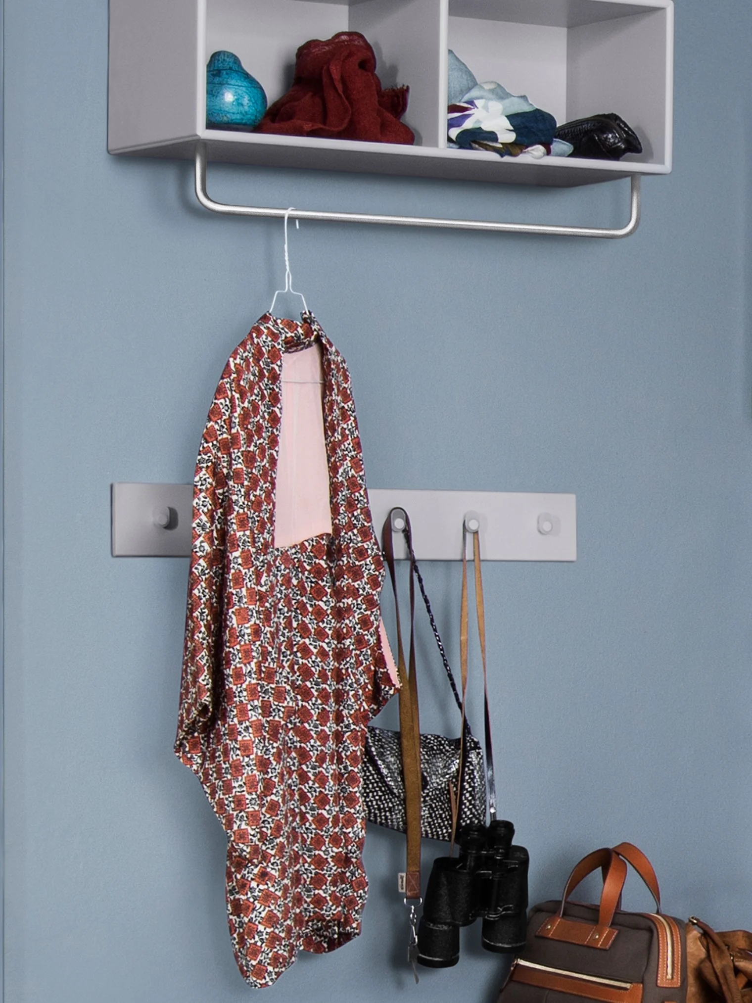 Wieszaki Montana są dostępne w ponad 40 kolorach lakieru. Stojak można połączyć z ławką na buty, która sprawdzi się przy wejściu do domu.