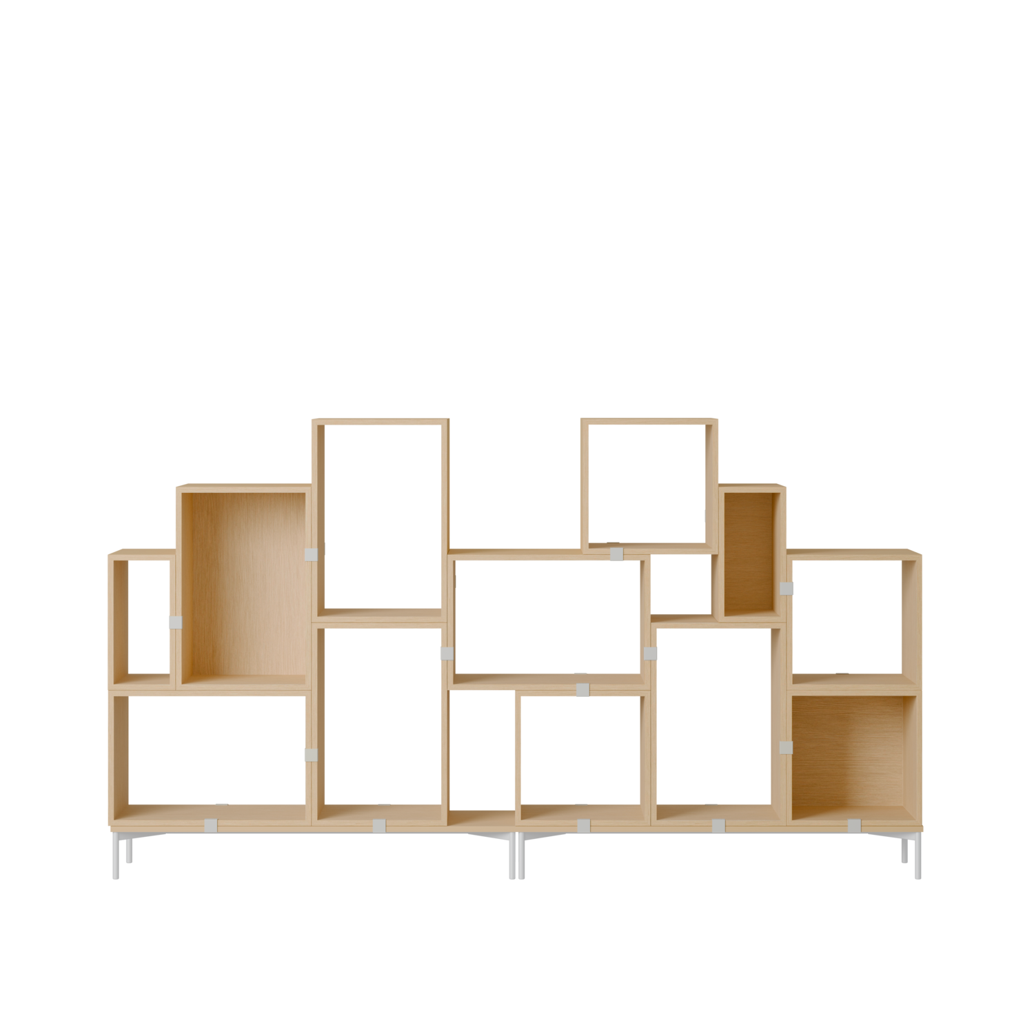 W ramach serii STACKED, która jest modułowym systemem półek i szafek, możesz wybrać także jedną z wielu gotowych konfiguracji. Każda z konfiguracji dostępna jest w pięciu kolorach - naturalny dąb, biały, jasnoszary, granatowy i szary lub w łączącej różne barwienia wersji producenta. Jeśli żadna z gotowych konfiguracji nie przypadnie Ci do gustu, to pamiętaj, że zawsze sam możesz stworzyć swój własny zestaw skandynawskich modułów STACKED od MUUTO.