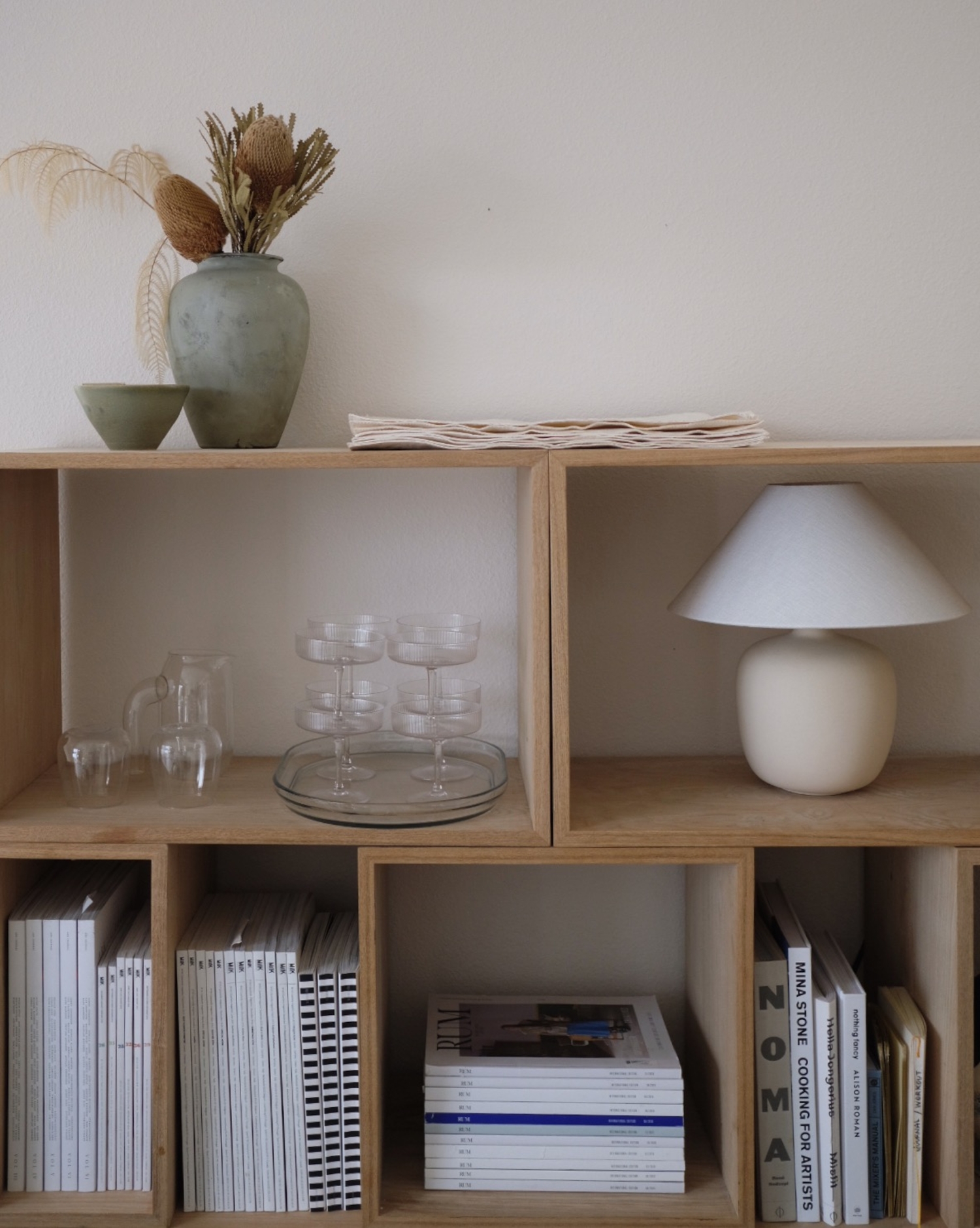 W ramach serii STACKED, która jest modułowym systemem półek i szafek, możesz wybrać także jedną z wielu gotowych konfiguracji. Każda z konfiguracji dostępna jest w pięciu kolorach - naturalny dąb, biały, jasnoszary, granatowy i szary lub w łączącej różne barwienia wersji producenta. Jeśli żadna z gotowych konfiguracji nie przypadnie Ci do gustu, to pamiętaj, że zawsze sam możesz stworzyć swój własny zestaw skandynawskich modułów STACKED od MUUTO.