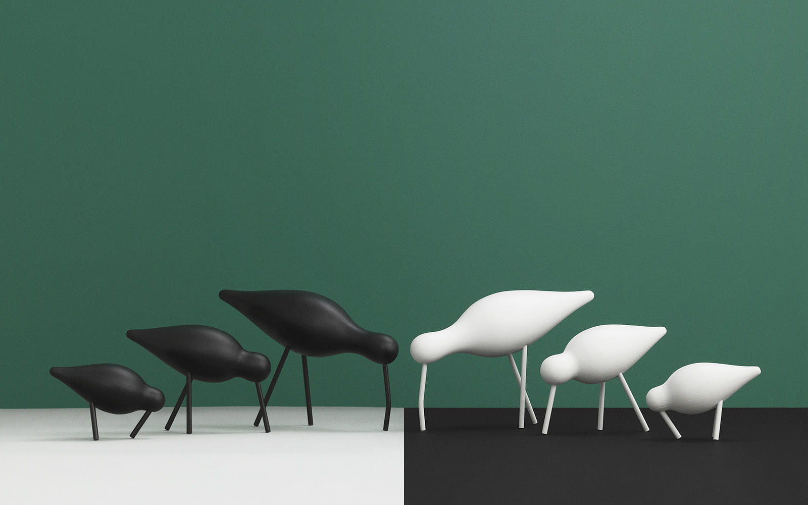 Sigurjon Palsson o swoim projekcie: "Byłem zafascynowany ptakami od dzieciństwa i obserwowałem je od kiedy pamiętam. W związku z tym zawsze wiedziałem, że będę mógł je włączać do swoich projektów. Naturalny, jasny, brązowy kolor dębu jest podobny do koloru ptaków, które mnie zainspirowały. Różność pozycji ptaków była oparta na naturalnych pozycjach brodzących ptaków, gdy szukały jedzenia w piachu lub przy linii brzegowej. Kolorowe nogi i dziób uzupełniają wyraz."