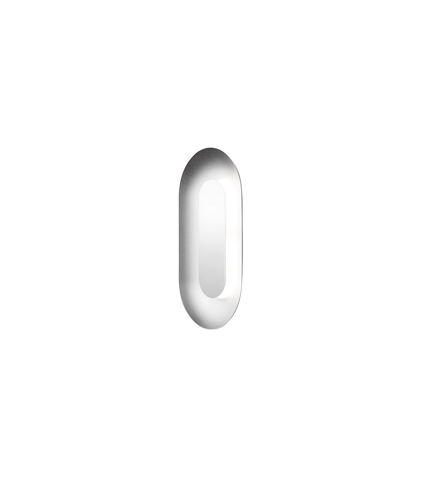Sasi Small to mała designerska lampa ścienna stworzona we współpracy z Holendrem Rickiem Tegelaarem. Srebrny, owalny aluminiowy klosz w satynowym wykończeniu stanowi podstawę, a mniejszy kształt umieszczono w środku. Lśniący efekt lustrzany tworzy subtelne odbicia i pełni funkcję klosza dla zintegrowanego modułu LED, rozprowadzając dyskretne i pośrednie światło. Użyj Sasi Small jako dekoracyjnej lampy ściennej w salonie, na klatce schodowej i w holu.