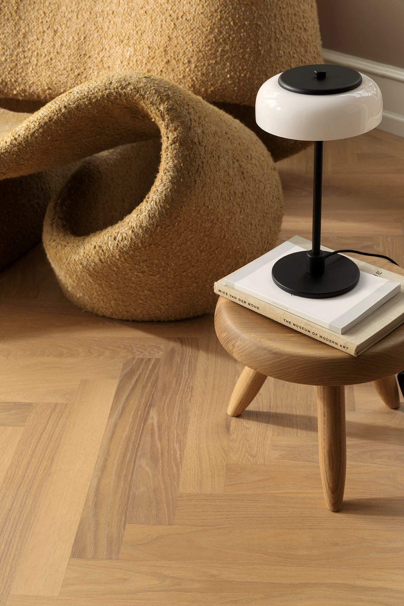 Blossi Table small to mniejsza wersja lampy Blossi table. Jest to lampa stołowa o smukłej i prostej formie. Zintegrowana dioda LED delikatnie odbija światło w kloszu, przypominając złote jesienne światło. Kolekcja Blossi jest teraz produkowana w wersji niskonapięciowej z łatwo wymienną kartą LED, oferując światło bez migotania i spełniając najnowsze unijne przepisy dotyczące efektywności energetycznej oświetlenia. Kabel ze ściemniaczem i wtyczką EU + UK.