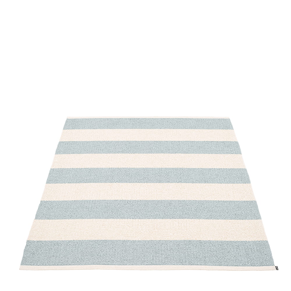 Dywan BOB marki Pappelina to dywan wykonany ze wstążek PVC tkanych na krosnach tradycyjną metodą. Z uwagi na materiał, z którego został stworzony, jest niezwykle odporny na uszkodzenia i warunki zewnętrzne, a tym samym praktyczny i łatwy w pielęgnacji, dzięki czemu świetnie nadaje się do przedpokoju, holu, kuchni, na taras lub na balkon.