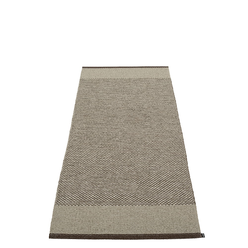 Dywan EDIT marki Pappelina to dywan wykonany ze wstążek PVC tkanych na krosnach tradycyjną metodą. Z uwagi na materiał, z którego został stworzony, jest niezwykle odporny na uszkodzenia i warunki zewnętrzne, a tym samym praktyczny i łatwy w pielęgnacji, dzięki czemu świetnie nadaje się do przedpokoju, holu, kuchni, na taras lub na balkon.