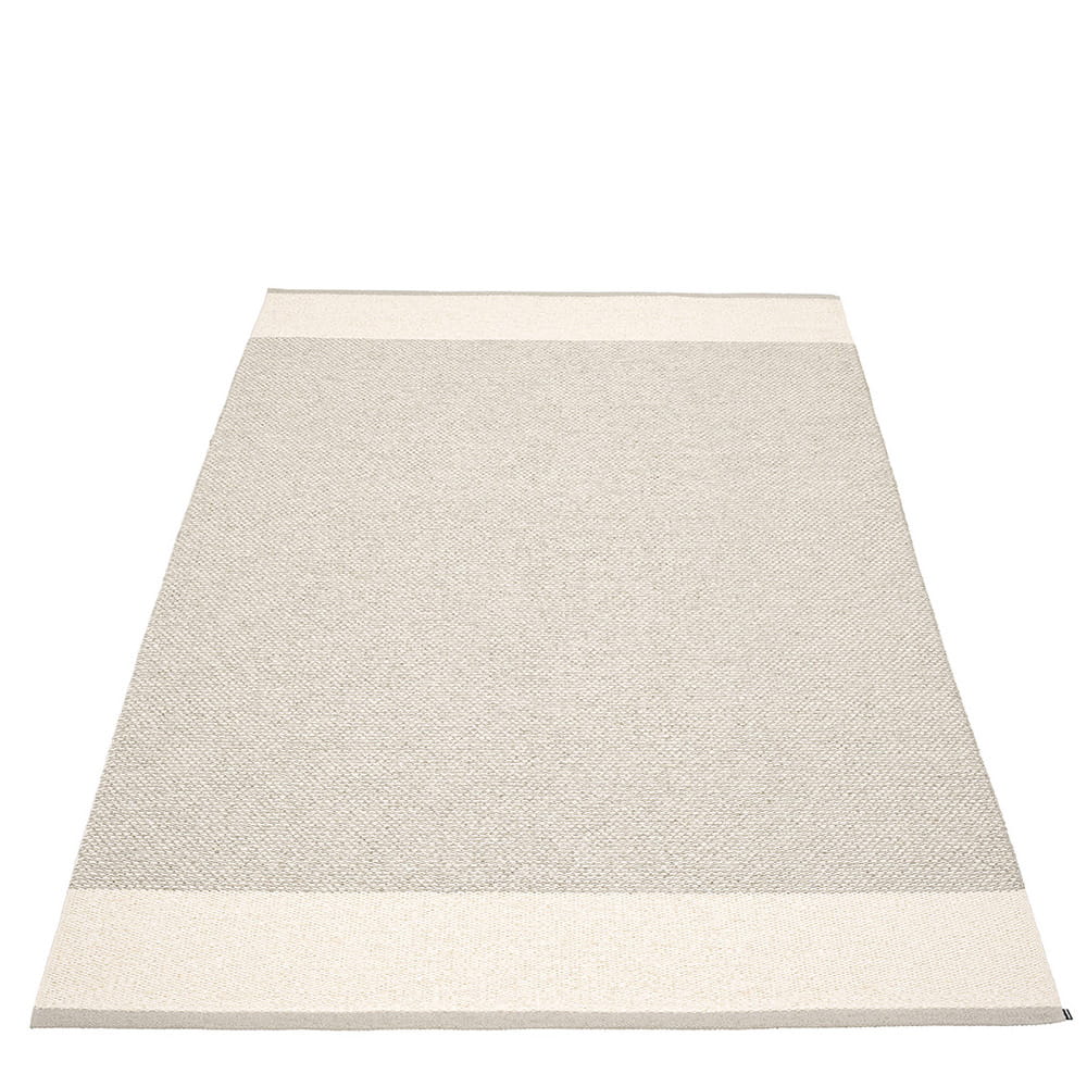 Dywan EDIT marki Pappelina to dywan wykonany ze wstążek PVC tkanych na krosnach tradycyjną metodą. Z uwagi na materiał, z którego został stworzony, jest niezwykle odporny na uszkodzenia i warunki zewnętrzne, a tym samym praktyczny i łatwy w pielęgnacji, dzięki czemu świetnie nadaje się do przedpokoju, holu, kuchni, na taras lub na balkon.