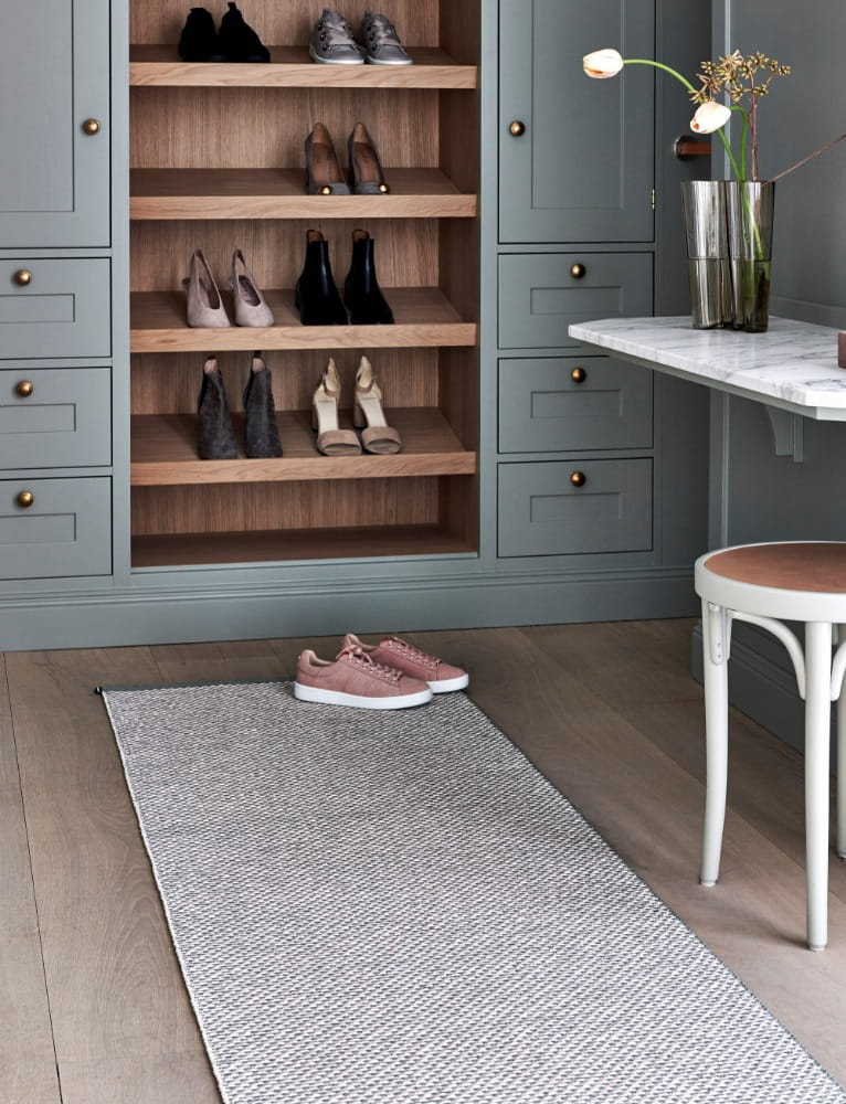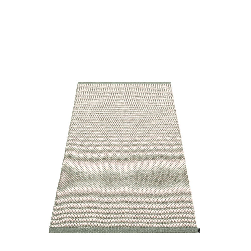 Dywan EFFI marki Pappelina to dywan wykonany ze wstążek PVC tkanych na krosnach tradycyjną metodą. Z uwagi na materiał, z którego został stworzony, jest niezwykle odporny na uszkodzenia i warunki zewnętrzne, a tym samym praktyczny i łatwy w pielęgnacji, dzięki czemu świetnie nadaje się do przedpokoju, holu, kuchni, na taras lub na balkon.