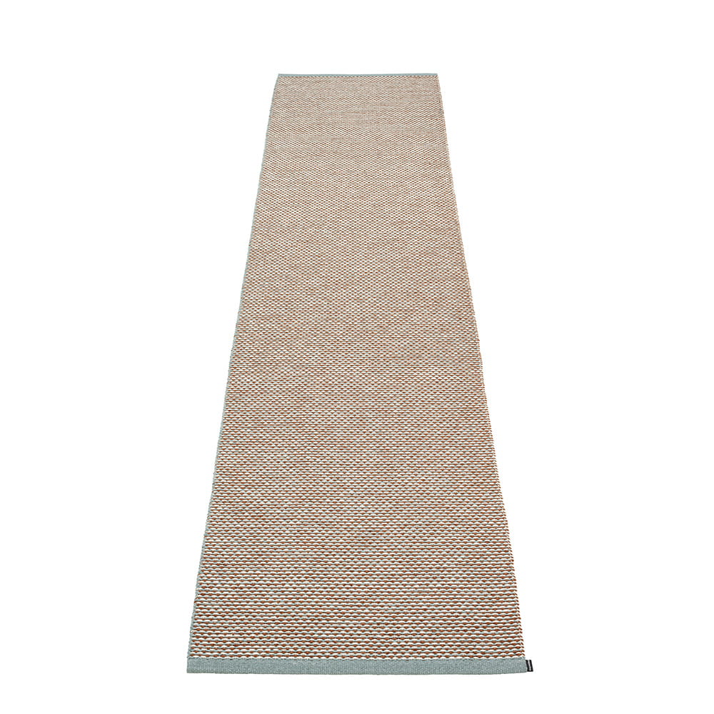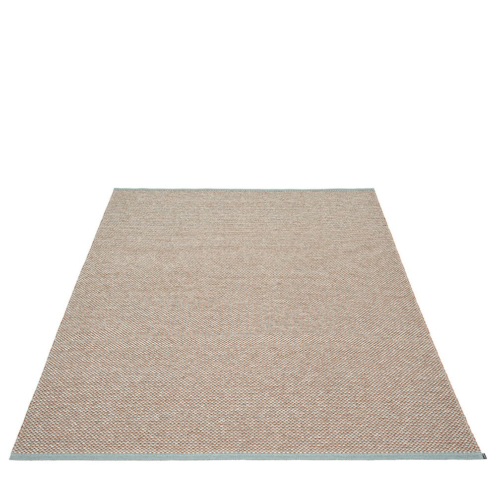 Dywan EFFI marki Pappelina to dywan wykonany ze wstążek PVC tkanych na krosnach tradycyjną metodą. Z uwagi na materiał, z którego został stworzony, jest niezwykle odporny na uszkodzenia i warunki zewnętrzne, a tym samym praktyczny i łatwy w pielęgnacji, dzięki czemu świetnie nadaje się do przedpokoju, holu, kuchni, na taras lub na balkon.