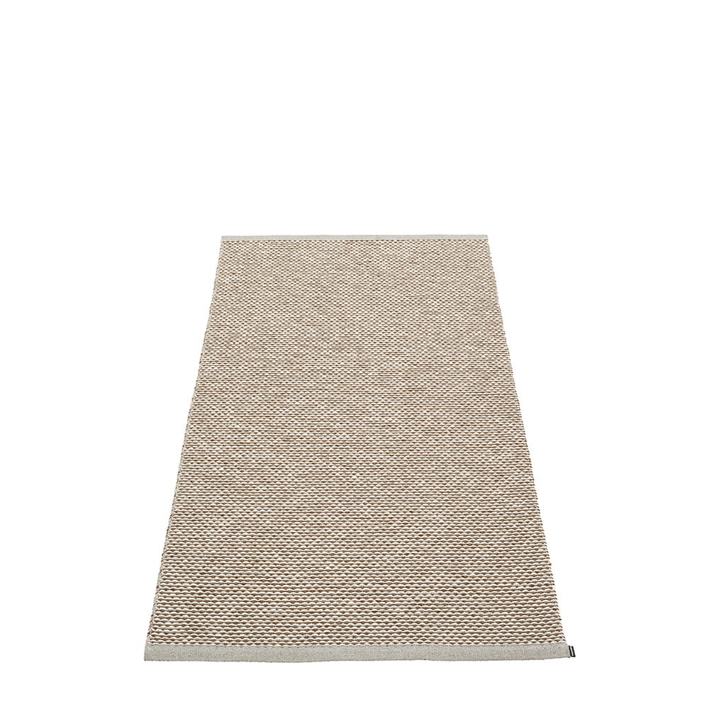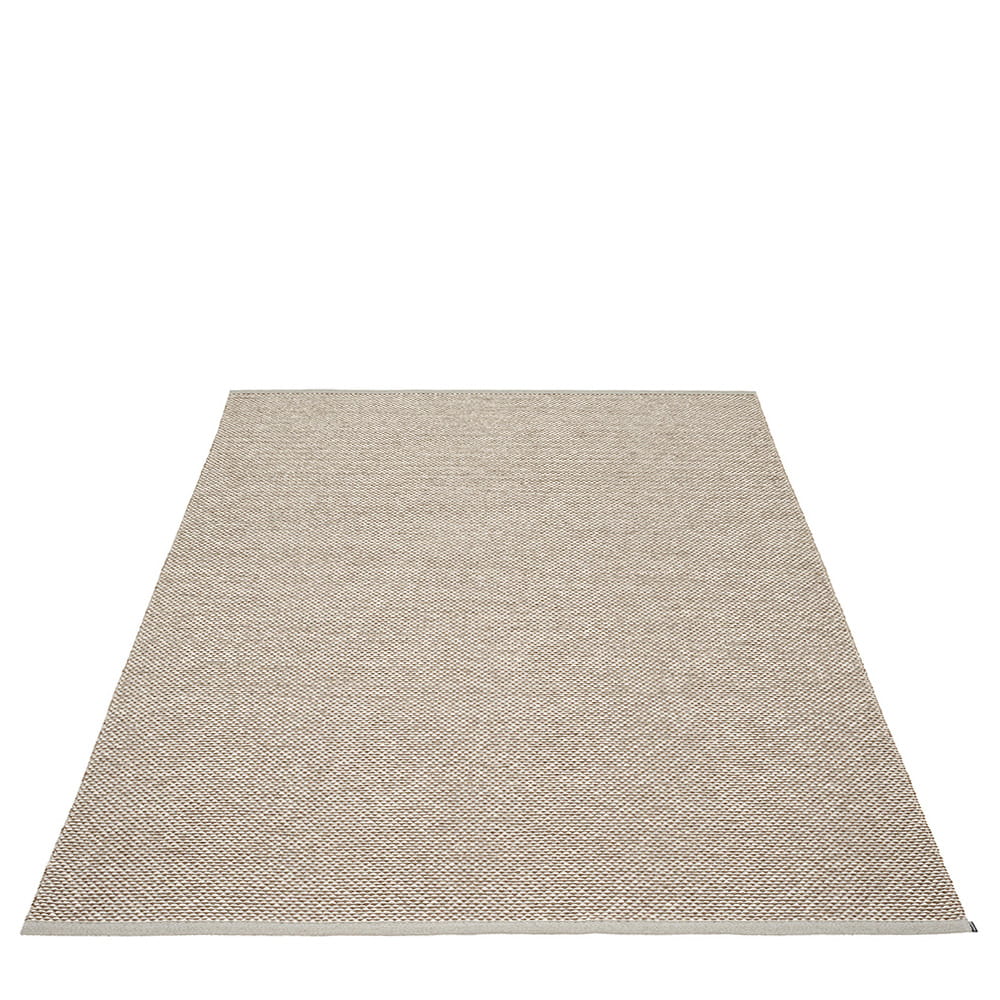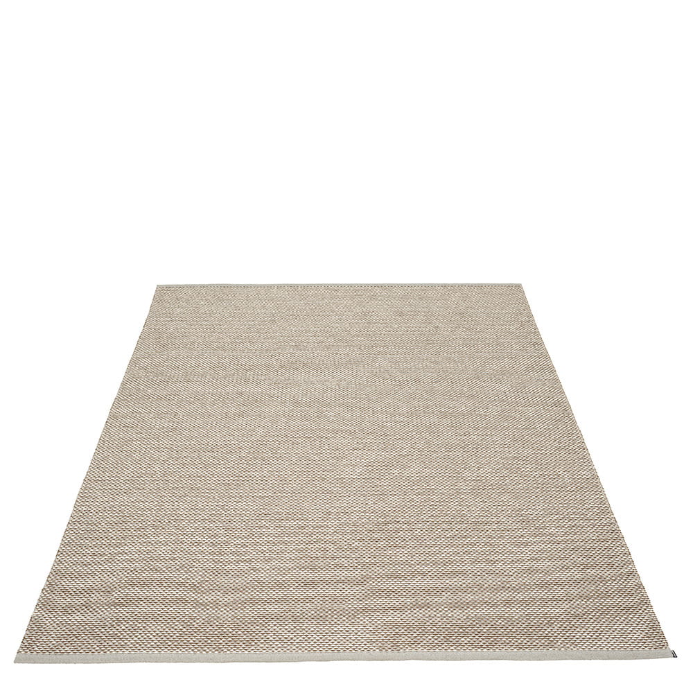 Dywan EFFI marki Pappelina to dywan wykonany ze wstążek PVC tkanych na krosnach tradycyjną metodą. Z uwagi na materiał, z którego został stworzony, jest niezwykle odporny na uszkodzenia i warunki zewnętrzne, a tym samym praktyczny i łatwy w pielęgnacji, dzięki czemu świetnie nadaje się do przedpokoju, holu, kuchni, na taras lub na balkon.