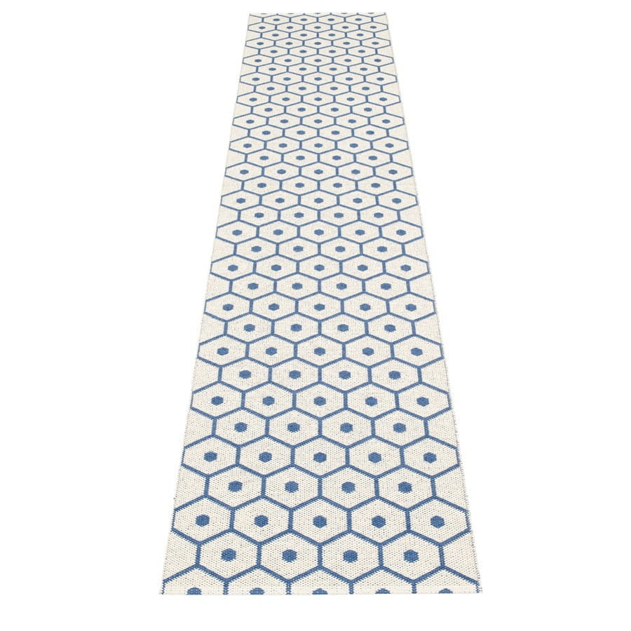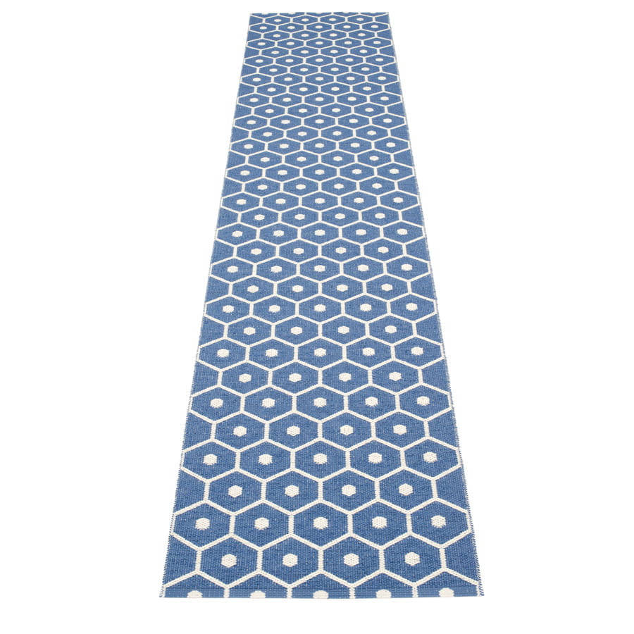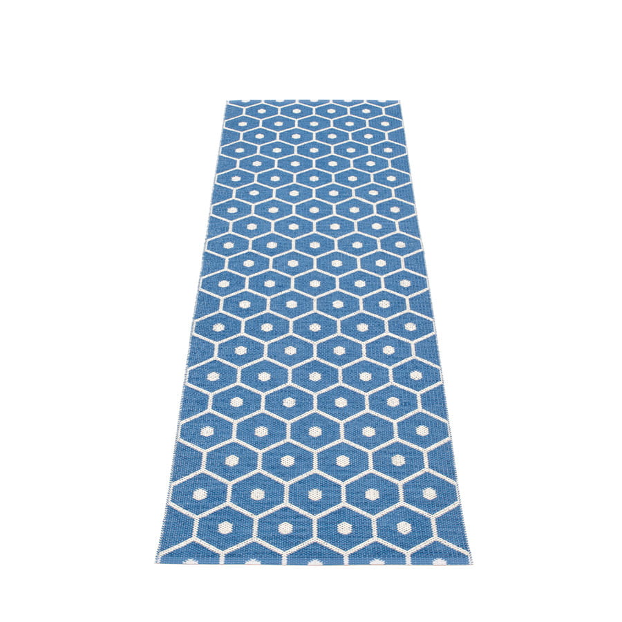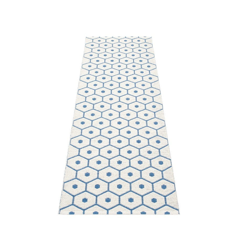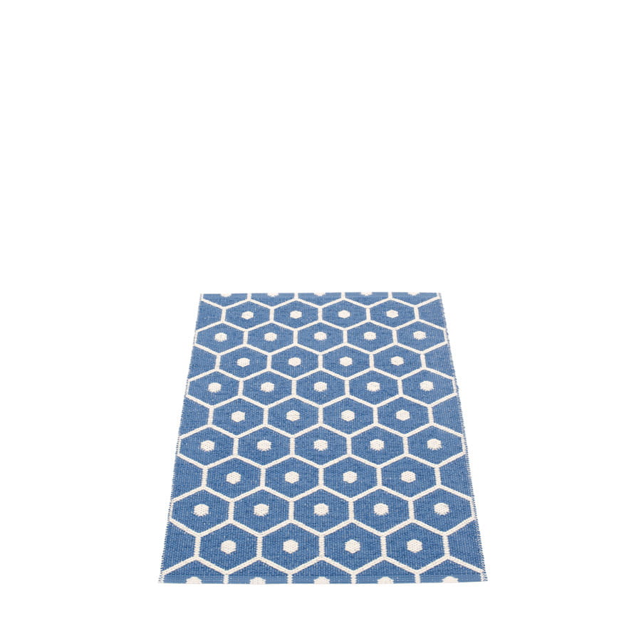 Dywan HONEY marki Pappelina to dywan wykonany ze wstążek PVC tkanych na krosnach tradycyjną metodą. Z uwagi na materiał, z którego został stworzony, jest niezwykle odporny na uszkodzenia i warunki zewnętrzne, a tym samym praktyczny i łatwy w pielęgnacji, dzięki czemu świetnie nadaje się do przedpokoju, holu, kuchni, na taras lub na balkon. Dodatkową zaletą dywanu jest jego dwustronność (kolory na rewersie są negatywem w stosunku do kolorów awersu), dzięki czemu możemy w łatwy sposób odmieniać wygląd naszego wnętrza zgodnie z aktualnymi potrzebami.