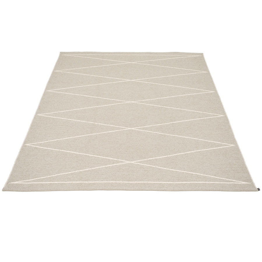 Dywan MAX marki Pappelina to dywan wykonany ze wstążek PVC tkanych na krosnach tradycyjną metodą. Z uwagi na materiał, z którego został stworzony, jest niezwykle odporny na uszkodzenia i warunki zewnętrzne, a tym samym praktyczny i łatwy w pielęgnacji, dzięki czemu świetnie nadaje się do przedpokoju, holu, kuchni, na taras lub na balkon. Dodatkową zaletą dywanu jest jego dwustronność (kolory na rewersie są negatywem w stosunku do kolorów awersu), dzięki czemu możemy w łatwy sposób odmieniać wygląd naszego wnętrza zgodnie z aktualnymi potrzebami.