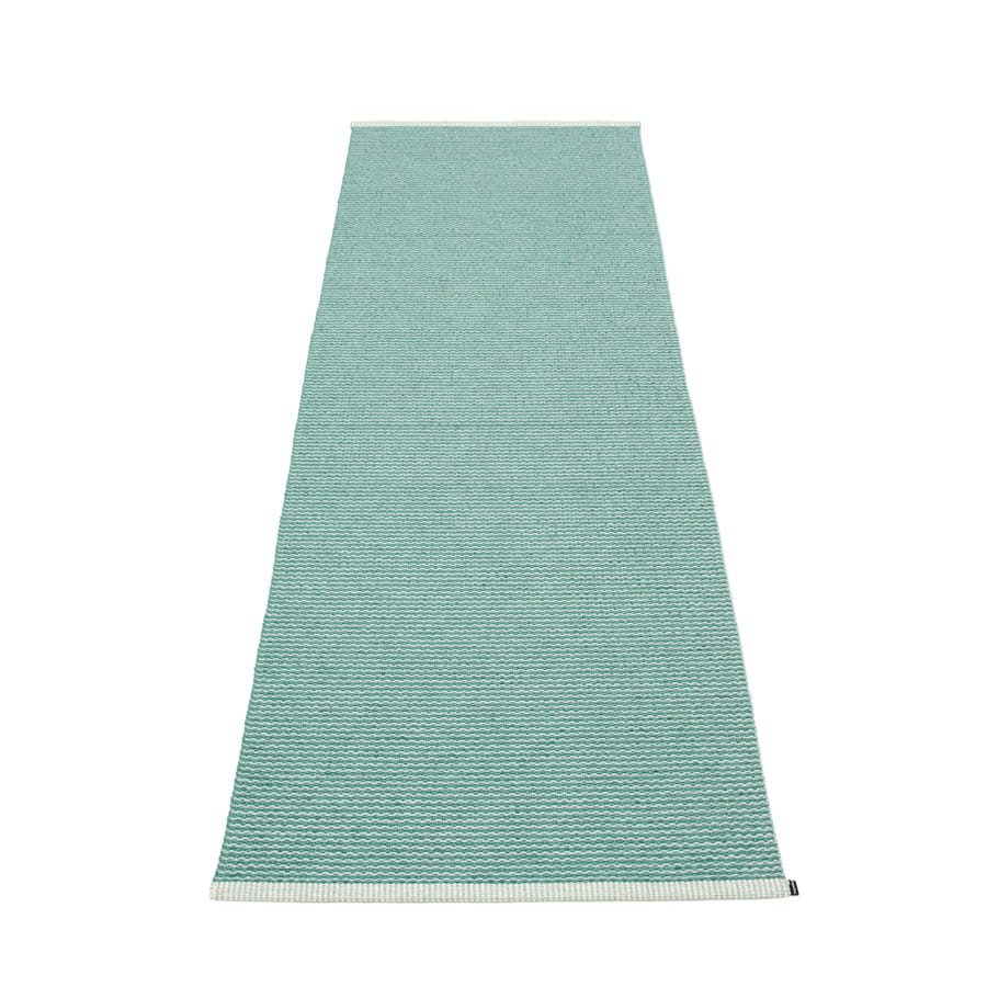 Dywan MONO marki Pappelina to dywan wykonany ze wstążek PVC tkanych na krosnach tradycyjną metodą. Z uwagi na materiał, z którego został stworzony, jest niezwykle odporny na uszkodzenia i warunki zewnętrzne, a tym samym praktyczny i łatwy w pielęgnacji, dzięki czemu świetnie nadaje się do przedpokoju, holu, kuchni, na taras lub na balkon.