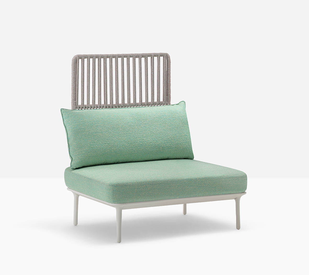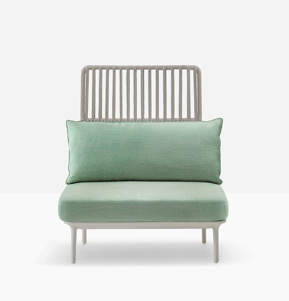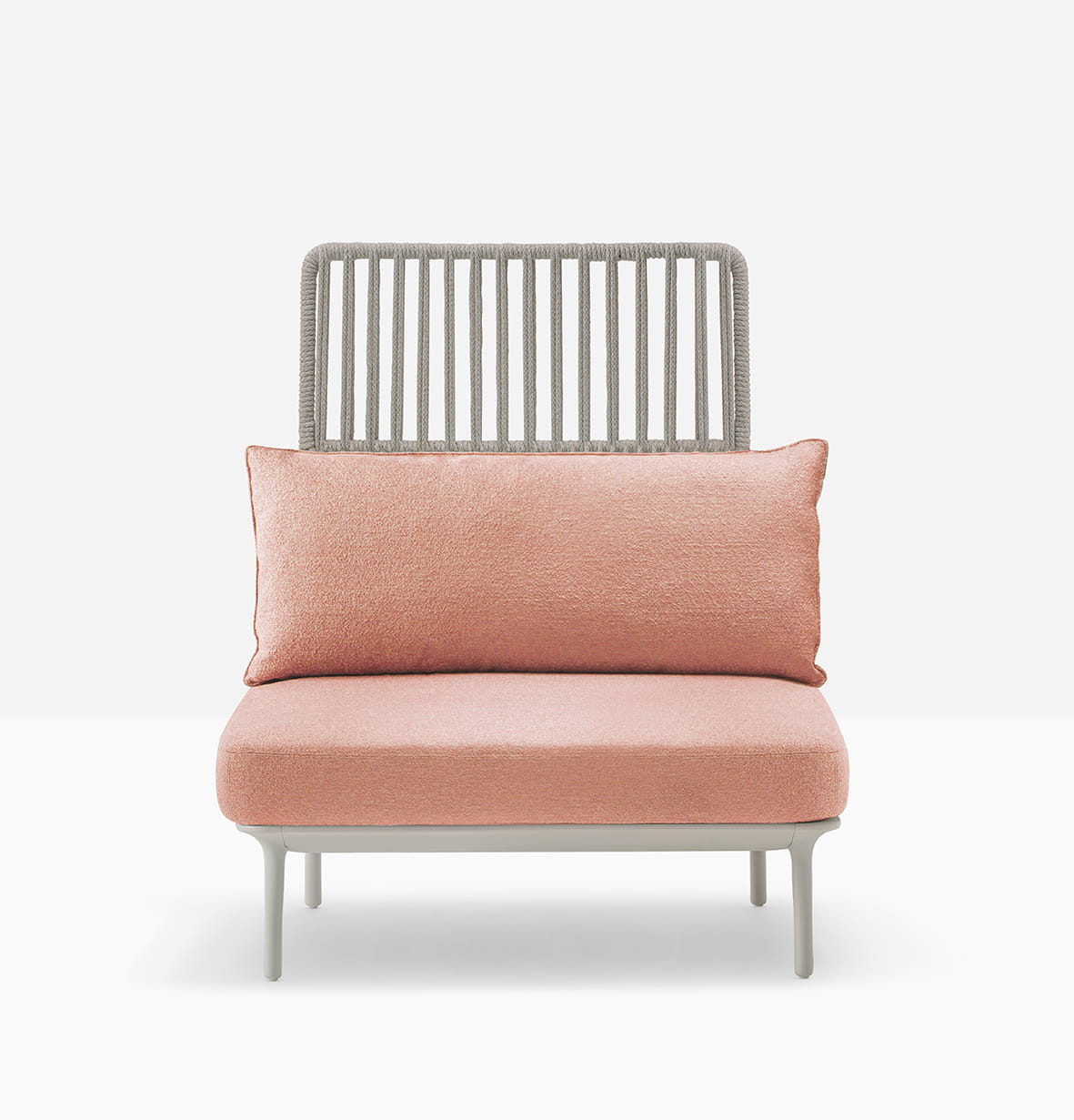 Reva Cocoon to system foteli wypoczynkowych do użytku na zewnątrz, zapewniający najwyższą swobodę użytkowania, wysoce adaptowalny i konfigurowalny na wiele sposobów, aby zapewnić maksymalny komfort i personalizację. Linia ta wyróżnia się efektownymi oparciami ze stali nierdzewnej oplecionymi liną z odpornego na warunki atmosferyczne polipropylenu, co zapewnia prawdziwie naturalny wygląd. Sznurkowy element, wykonany w 100% we Włoszech przez doświadczonych rzemieślników, zapewnia niezbędną prywatność, jednocześnie utrzymując mebel przewiewny i jasny dzięki grubszemu splotowi w dolnej części i luźniejszemu w górnej części. Liniowy fotel z wysokim lub niskim oparciem obejmującym ramę obwodową z wytłaczanego aluminium, na końcach której stoją cztery stożkowe nogi z odlewanego ciśnieniowo aluminium. Uczucie otulenia jest wzmocnione przez miękkie poduszki, które spoczywają na konstrukcji: poduszki siedziska wykonane są z pianki poliuretanowej, a poduszki oparcia z poliestru, owinięte w pełni wodoodporną wyściółką i pokryte tkaniną zewnętrzną.