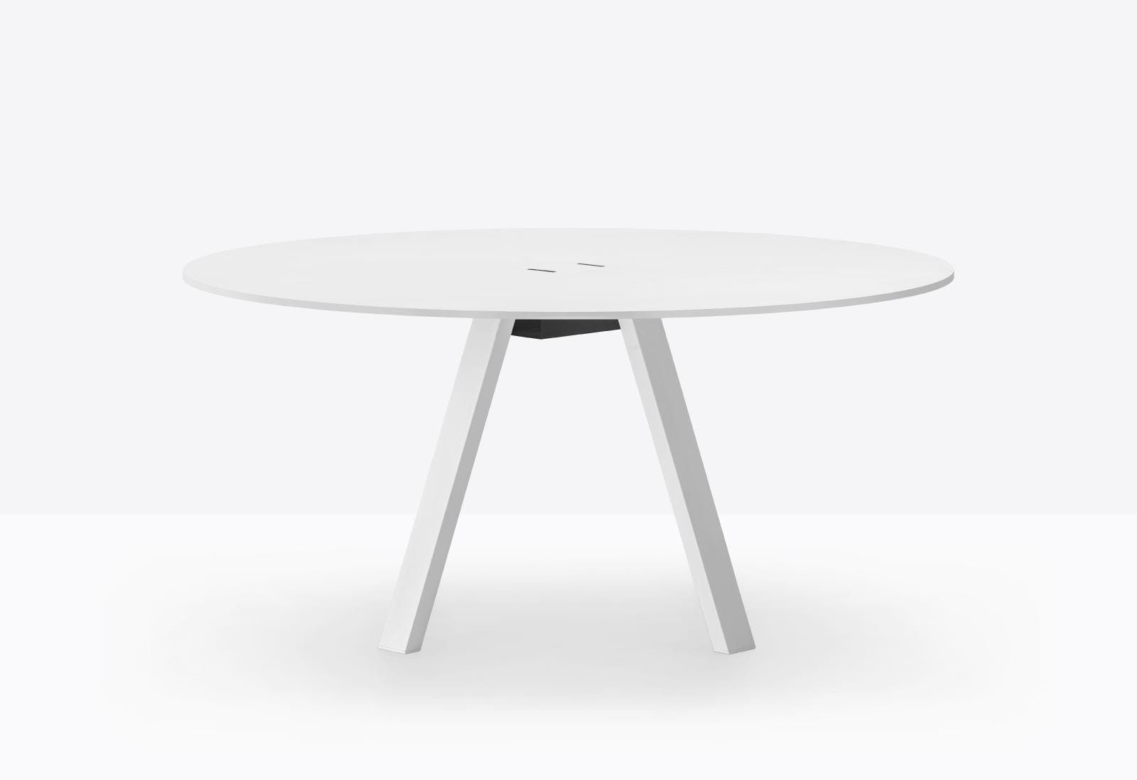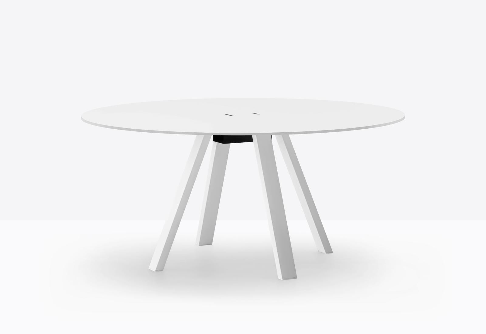 Stół Arki-Table jest liniowy i rygorystyczny z konstrukcyjnego punktu widzenia, ale jednocześnie wszechstronny i zaprojektowany do różnych zastosowań. Stół ze stalowymi nogami kozłowymi i okrągłym blatem wspartym na wytłaczanej aluminiowej ramie. Dostępny w wersji z systemem prowadzenia kabli lub bez.