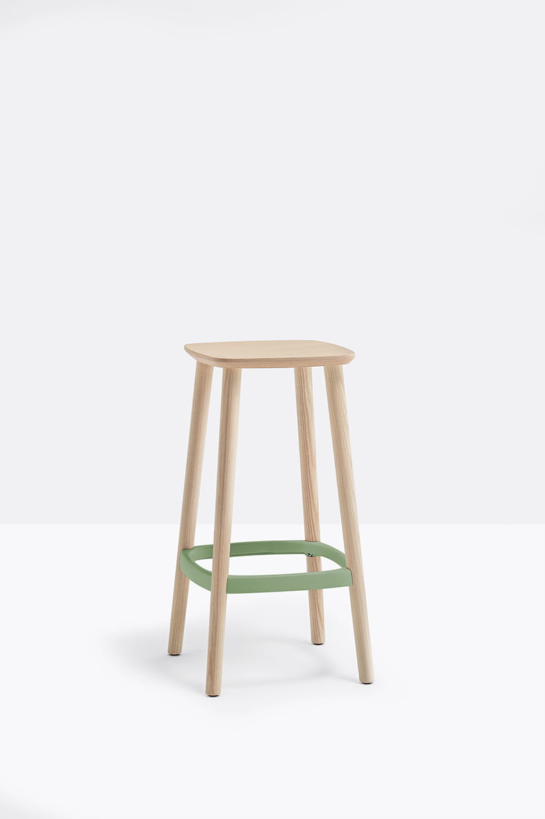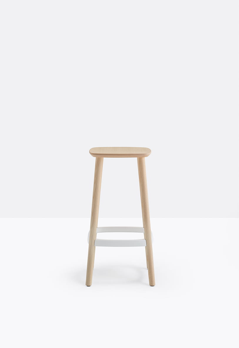 Kolekcja Babila jest w stanie poruszać się wzdłuż tradycji i innowacji z wielką zwinnością. Siłą tej kolekcji jest jej prostota i bezpośredniość, aby przywołać ponadczasowy kształt. Stołek barowy z drewna jesionowego ze zwężającymi się nogami, które idealnie łączą się z siedziskiem ze sklejki. Podnóżek z odlewanego ciśnieniowo aluminium.