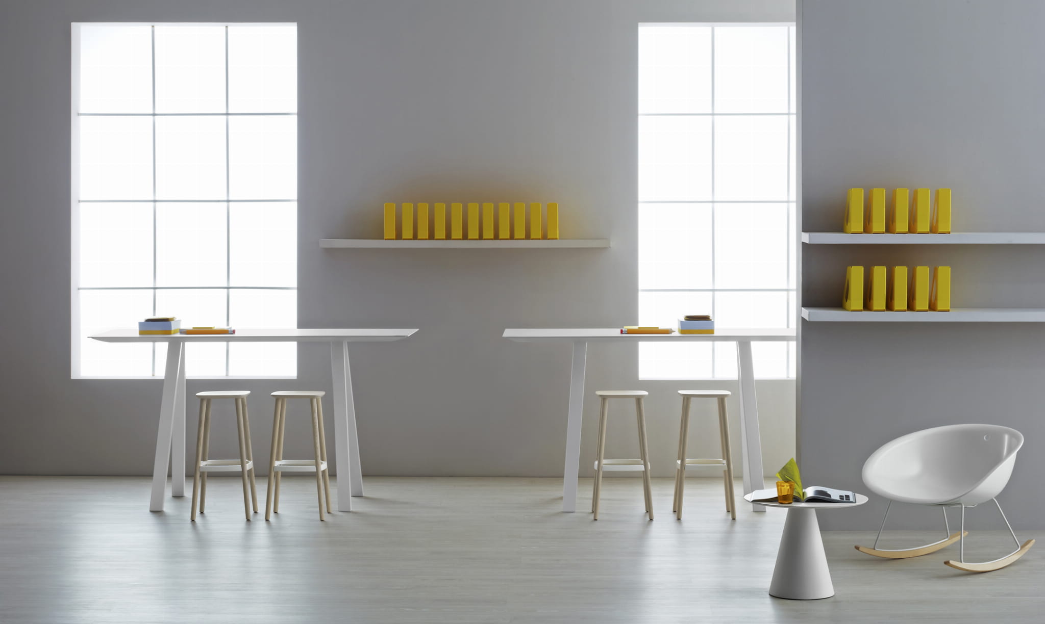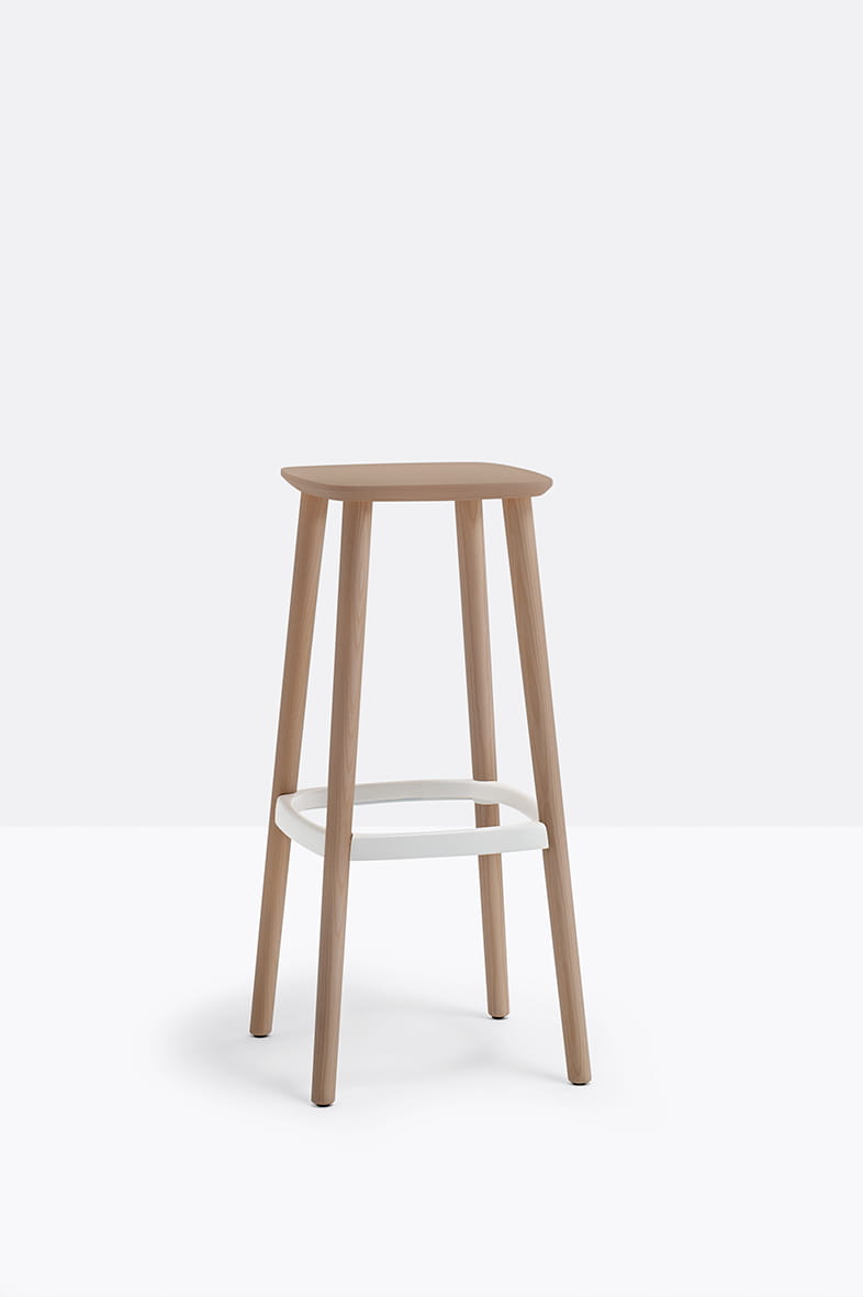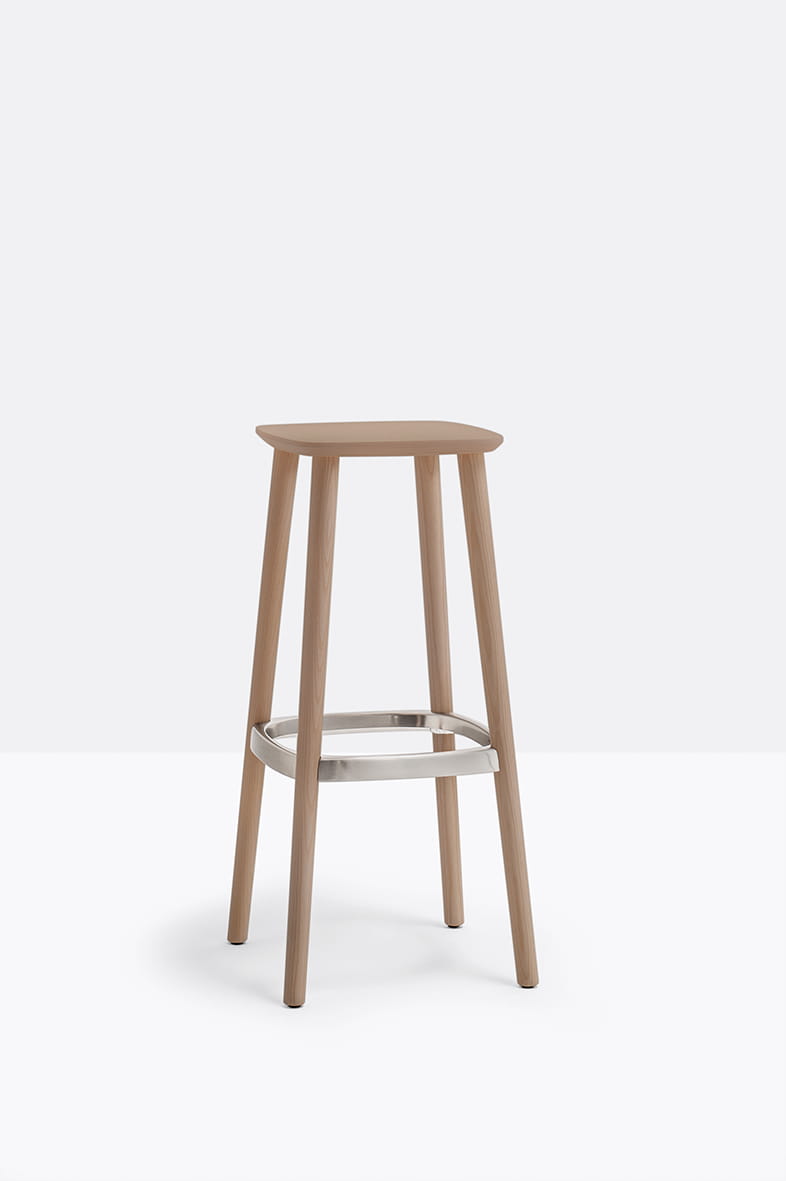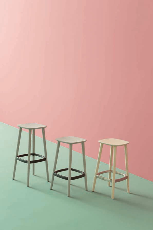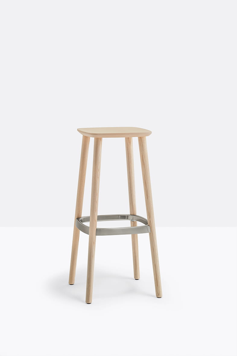Kolekcja Babila jest w stanie poruszać się wzdłuż tradycji i innowacji z wielką zwinnością. Siłą tej kolekcji jest jej prostota i bezpośredniość, aby przywołać ponadczasowy kształt. Stołek barowy z drewna jesionowego ze zwężającymi się nogami, które idealnie łączą się z siedziskiem ze sklejki.