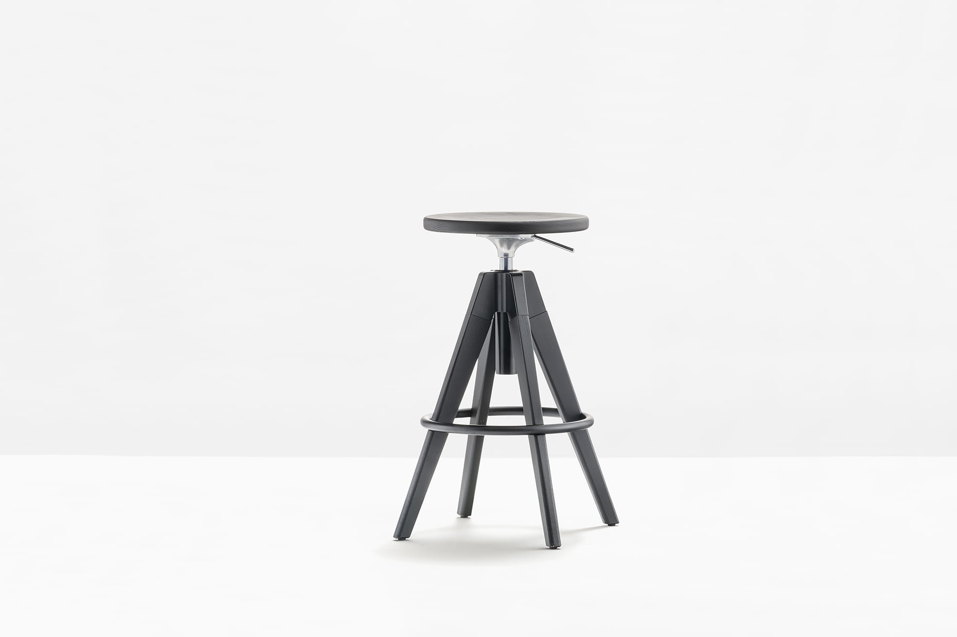 Stołek barowy regulowany Arki-Stool dołącza do kolekcji Arki, która przedstawia industrialny wygląd w funkcjonalny sposób. Stołek barowy z siedziskiem i nogami z litego drewna dębowego, obrotowy i z podnośnikiem gazowym do łatwej zmiany wysokości. Stalowy podnóżek tworzy ładny kontrast z naturalnością drewna.