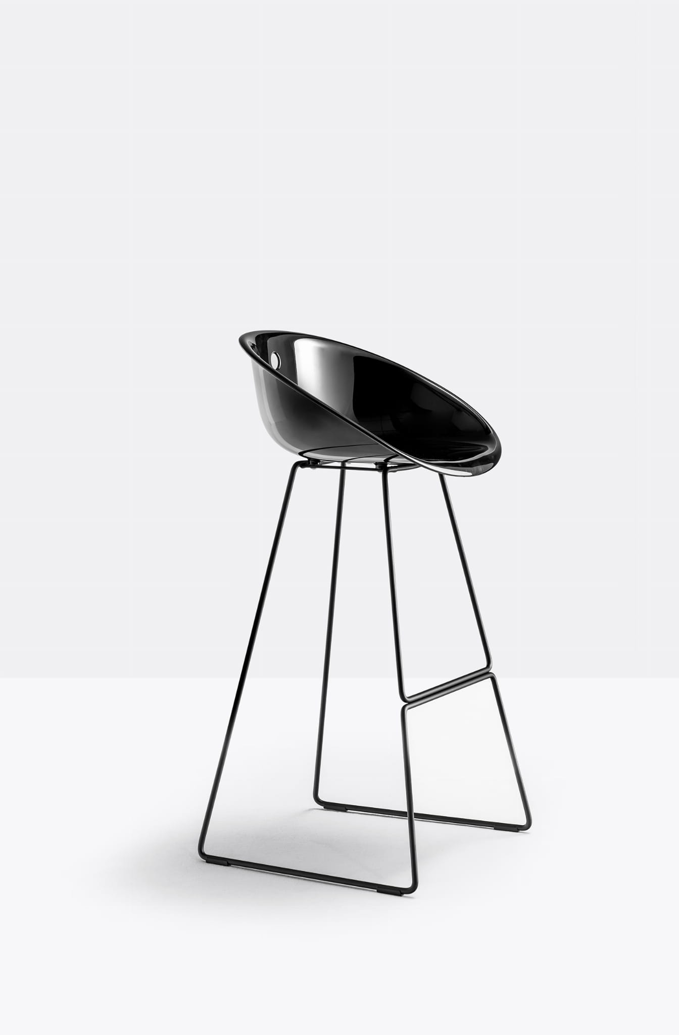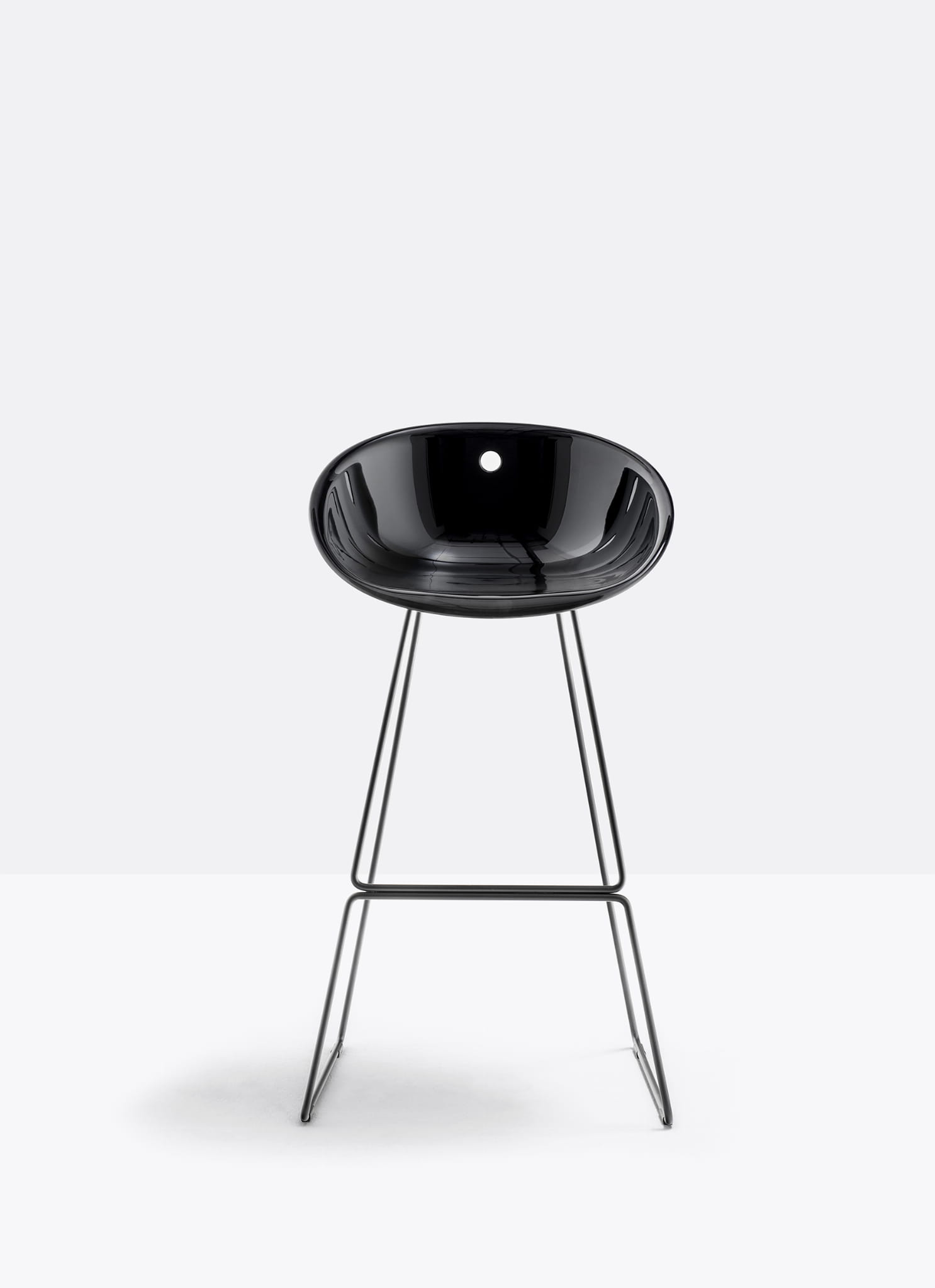 Gliss ma przytulny i ergonomiczny kształt inspirowany kultowymi krzesłami z lat pięćdziesiątych, z charakterystycznym otworem w skorupie. Kolekcja wyróżnia się wygodą i funkcjonalnością, którą zapewniają faliste podłokietniki obejmujące ciało i łatwość obsługi. Stołek barowy ze skorupą z poliwęglanu i ramą z pręta stalowego Ø 11 mm.