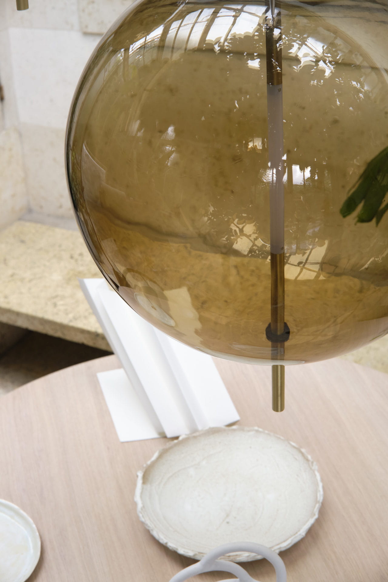 Źródło światła, wykonane na zamówienie specjalnie do tego projektu jest jak gdyby wtopione w pionowy trzon lampy i roztacza miękkie światło, którego natężenie można regulować dzięki ściemniaczowi.