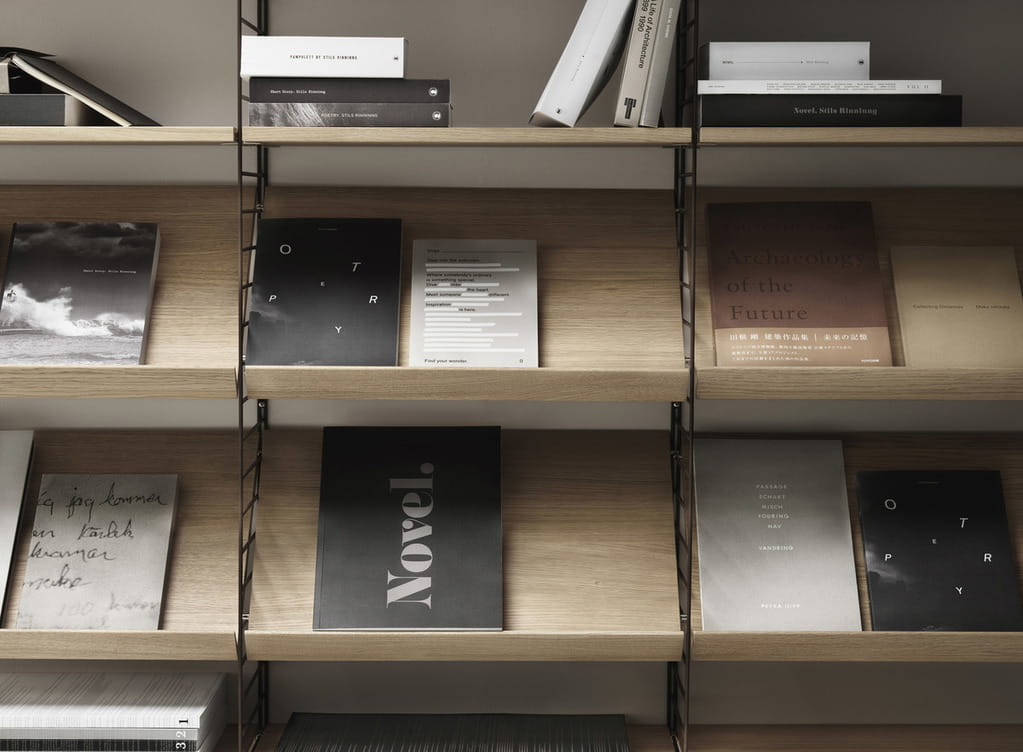 string® to system regałowy, którego bazowa forma zaprojektowana została w 1949 roku przez szwedzkiego architekta - Nisse Strinninga. Jego powstanie miało związek z kampanią reklamową prowadzoną przez największy szwedzki dom wydawniczy Bonnier, który chciał dać swoim klientom nie tylko książki, ale także miejsce, gdzie będą oni mogli je z dumą eksponować. Konkurs na nowy regał dla Bonnier wygrał Strinning. Ponadczasowa, minimalistyczna linia i niebywała funkcjonalność systemu string® sprawiły, że w niedługim czasie stał się on jedną z ikon światowego designu.