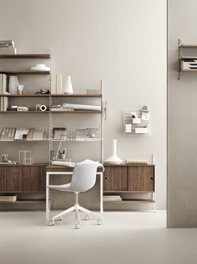 string® to system regałowy, którego bazowa forma zaprojektowana została w 1949 roku przez szwedzkiego architekta - Nisse Strinninga. Jego powstanie miało związek z kampanią reklamową prowadzoną przez największy szwedzki dom wydawniczy Bonnier, który chciał dać swoim klientom nie tylko książki, ale także miejsce, gdzie będą oni mogli je z dumą eksponować. Konkurs na nowy regał dla Bonnier wygrał Strinning. Ponadczasowa, minimalistyczna linia i niebywała funkcjonalność systemu string® sprawiły, że w niedługim czasie stał się on jedną z ikon światowego designu.