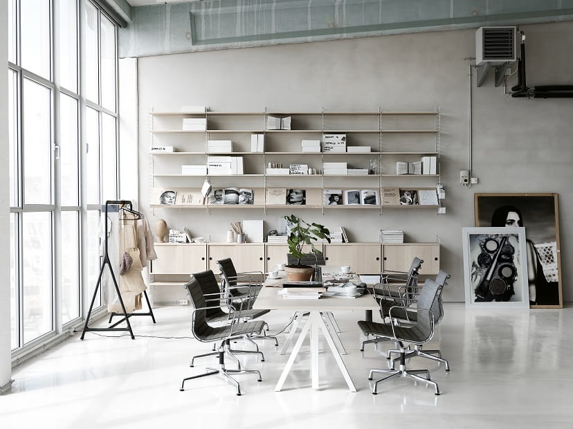 string® to system regałowy, którego bazowa forma zaprojektowana została w 1949 roku przez szwedzkiego architekta - Nisse Strinninga. Jego powstanie miało związek z kampanią reklamową prowadzoną przez największy szwedzki dom wydawniczy Bonnier, który chciał dać swoim klientom nie tylko książki, ale także miejsce, gdzie będą oni mogli je z dumą eksponować. Konkurs na nowy regał dla Bonnier wygrał Strinning. Ponadczasowa, minimalistyczna linia i niebywała funkcjonalność systemu string® sprawiły, że w niedługim czasie stał się on jedną z ikon światowego designu.